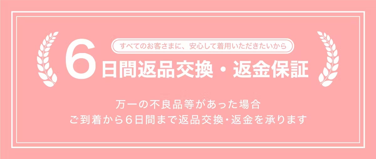 A6. お届け日から6日間の返品交換の保証をお付けいたします。返送料や手数料は当社が負担いたします。ただし、未使用品に限るため、商品のタグ等は必ず切らずにご連絡ください。タグが切られている場合は、保証対象外となりますので、予めご了承くださいませ。