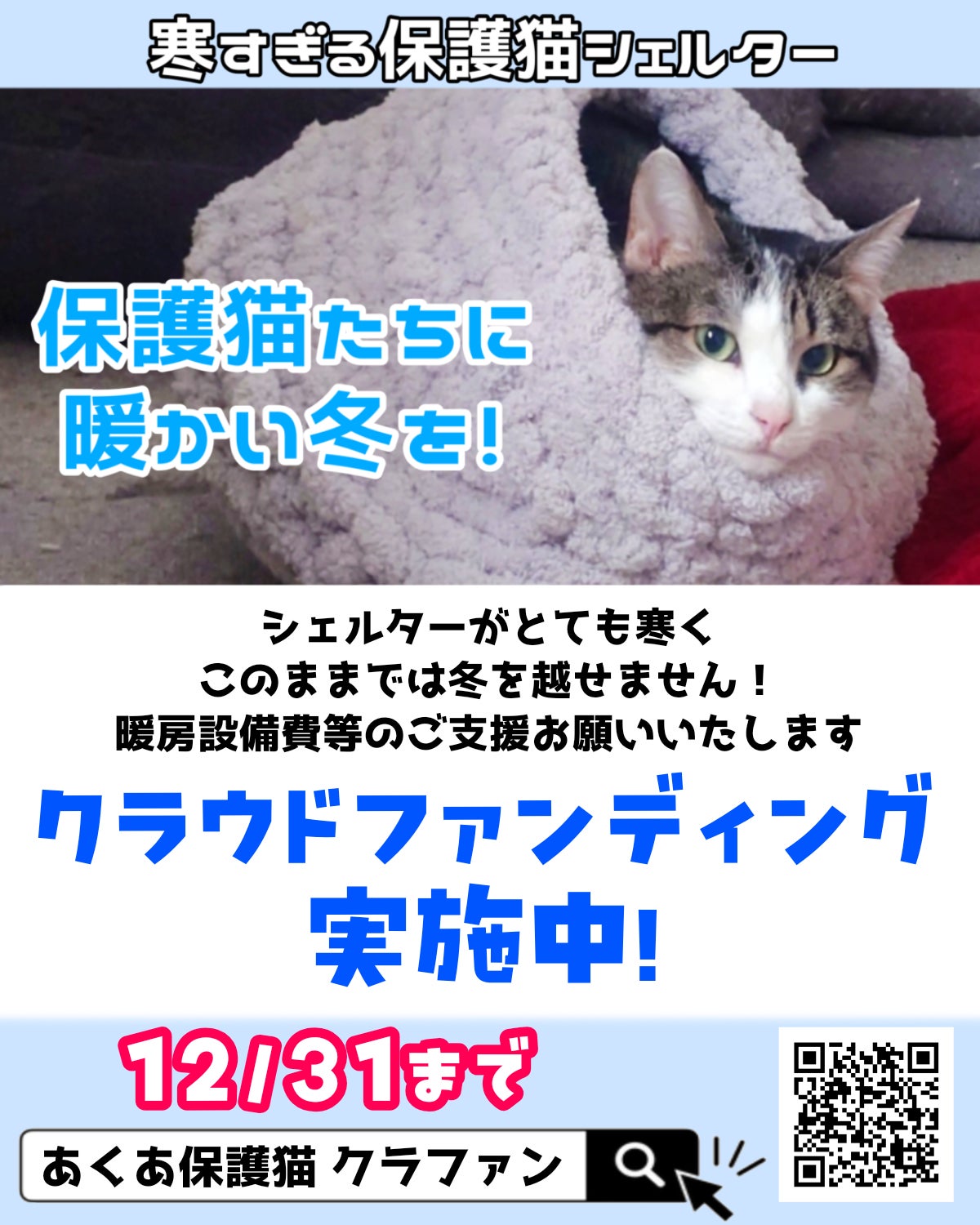 2025/12/22 19:35皆様にご協力いただき無事に引っ越しすることができました。ご協力いただきありがとうございました。ただ目標額を達成することは出来ず、予定していたエアコンの数を全て設置することが出来ませんでした。夏はなんとかなりましたが古い建物のため隙間風も多く現在の台数では部屋が温まりきりません。このままでは猫ちゃんたちが風邪を引いてしまいます。せっかく保護されてシェルターに来たので快適な暖かい場所で過ごしてもらいたいです。そこで新たにクラウドファンディングを開始しました。新規クラウドファンディングの詳細はこちら以前とは違ったリターンになっております。一度見るだけでもお願いいたします。ご支援のほどよろしくお願いいたします。新規クラウドファンディング詳細はこちら もっと見るリターン品発送準備