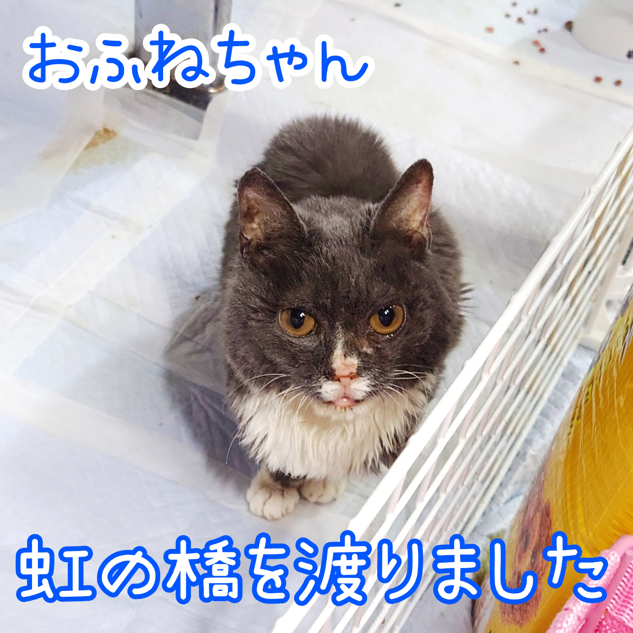 11日朝シェルターに行くといつもと様子が違い、病院に連れていきましたがどうにもなりませんでした。急なことでした。