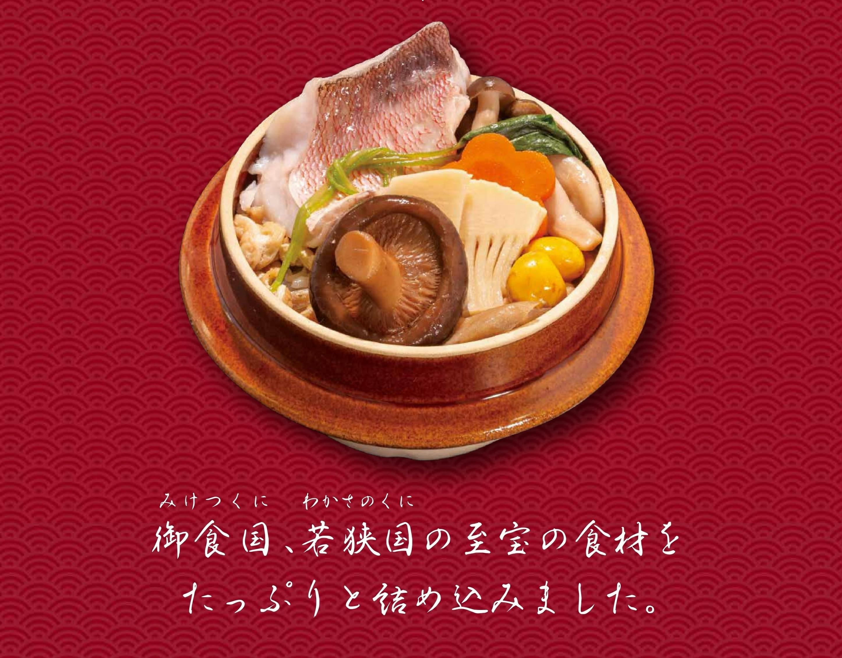 若狭地方の食材をふんだんに使用した”冷凍の釜めし”です。