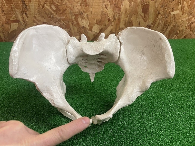 3つの骨(左右寛骨と中央の仙骨)の連合体である骨盤は単体でも坐骨でこのように独立します