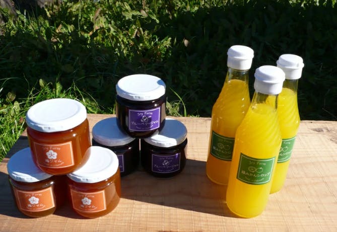 2種のブルーベリーをこだわりの割合で配合した、つぶつぶ感が特徴のブルーベリージャム、完熟した梅を使用した香り高い梅ジャム、摘果したみかんを使った爽やかな香りとほどよい酸味が癖になる緑みかんシロップです。