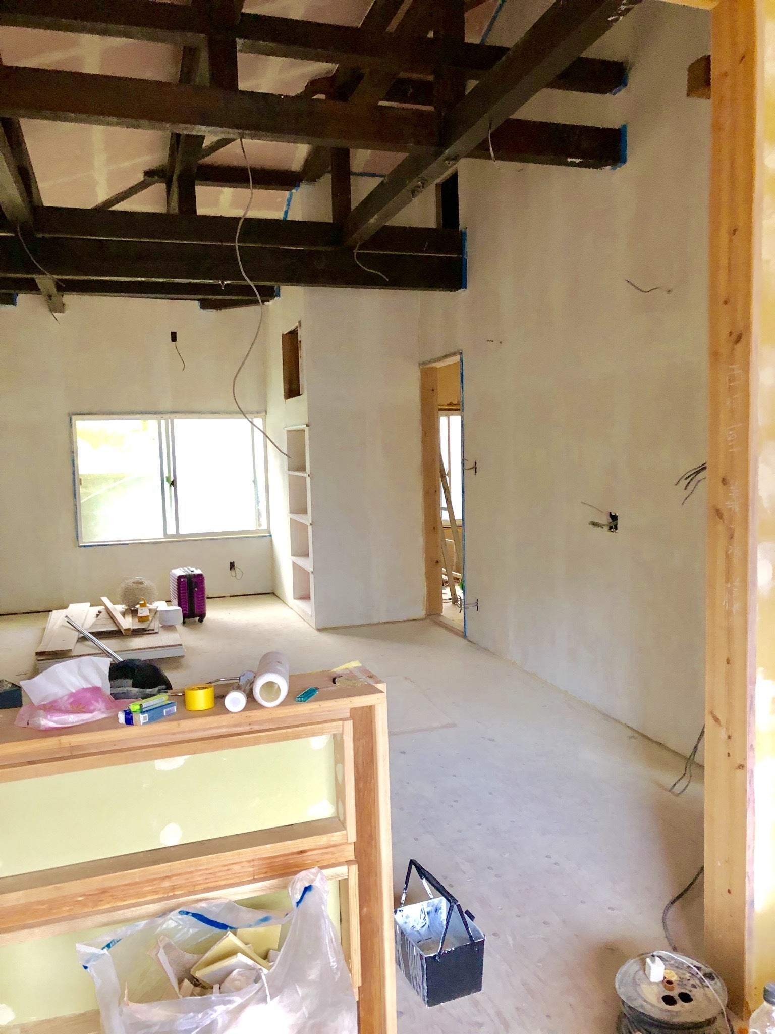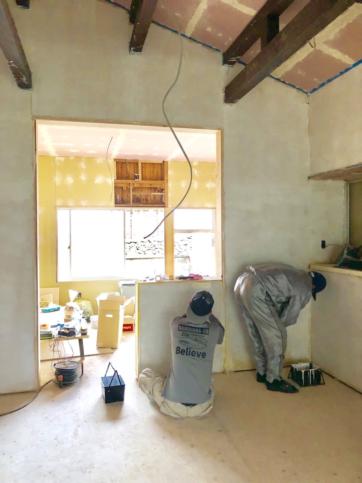 さて、お食事どころも壁を仕上げる最終段階に入ってまいりました。