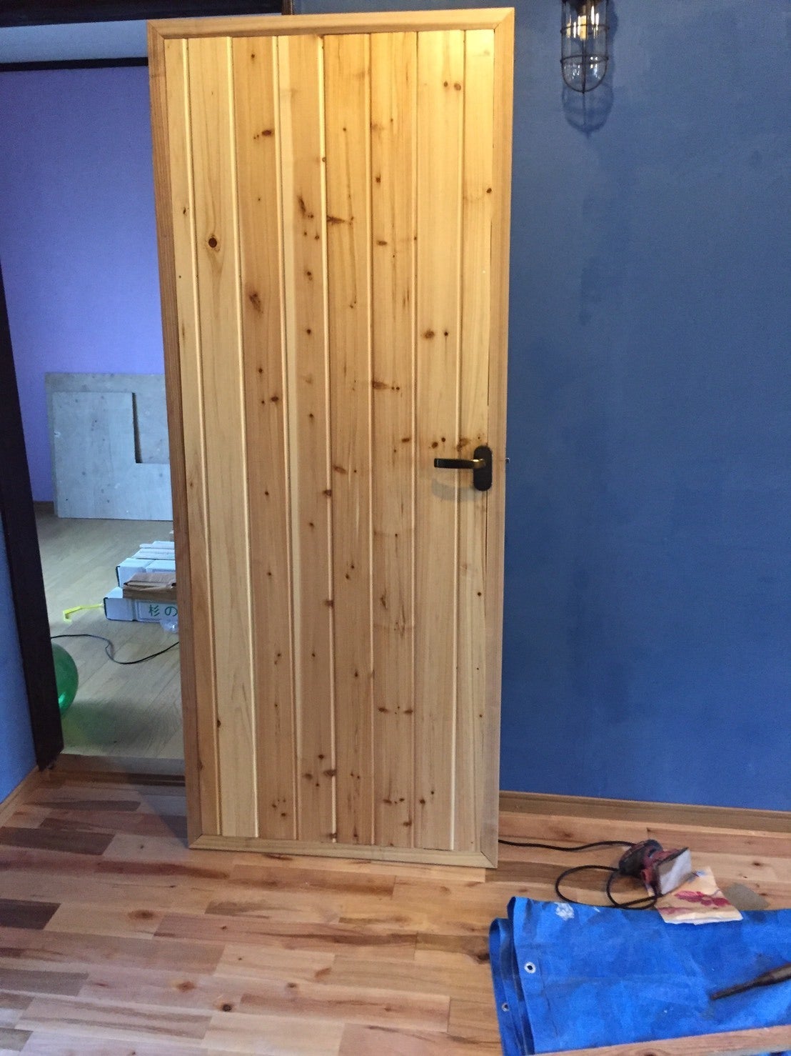 家を最近建てた方の余った板を頂き、ドアとテーブルをへい兄さんが作りました
