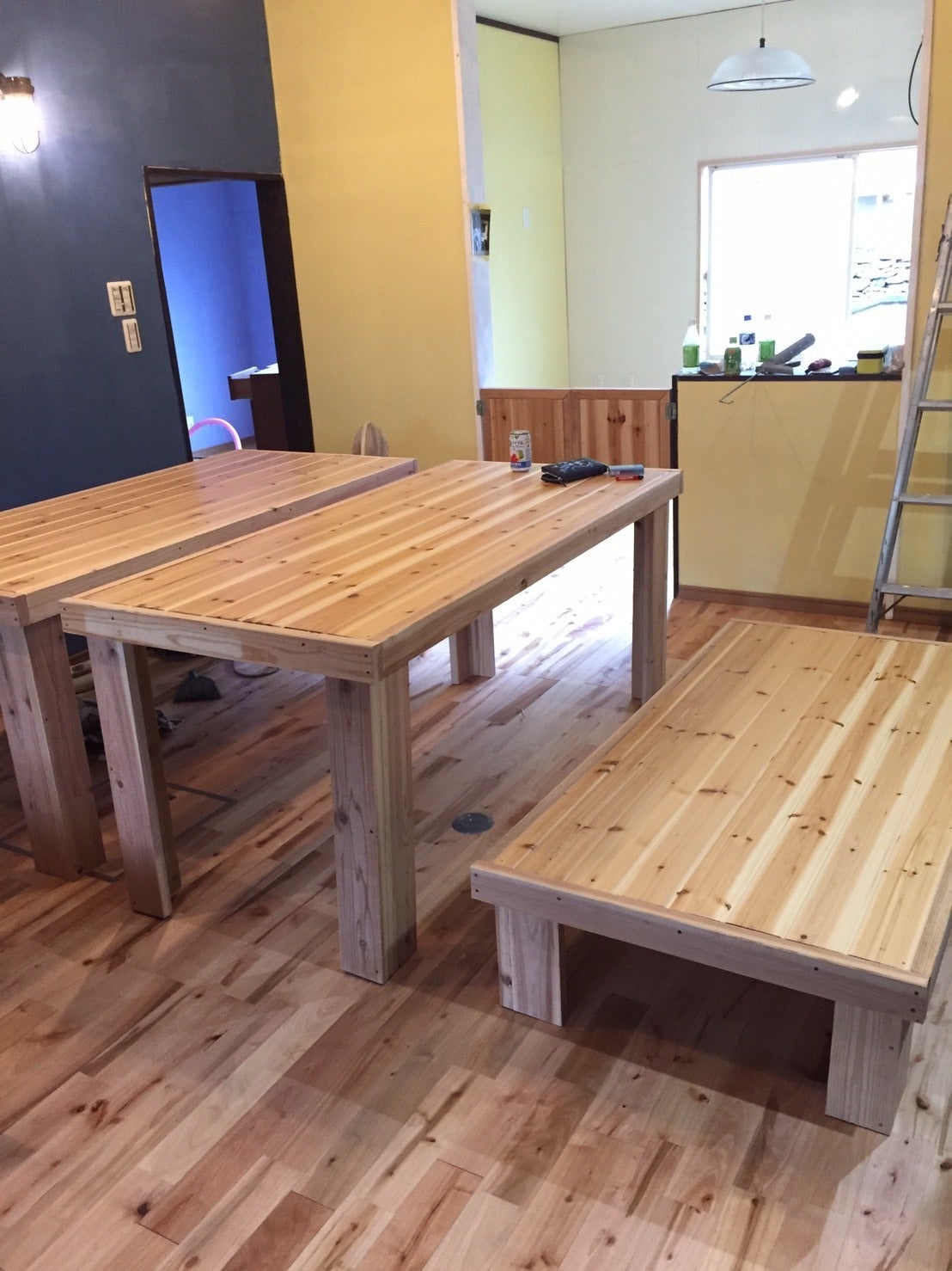 そして机はお年寄りに配慮して高い机を2台と、小さなお子様用に低いものと作ってもらいました!
