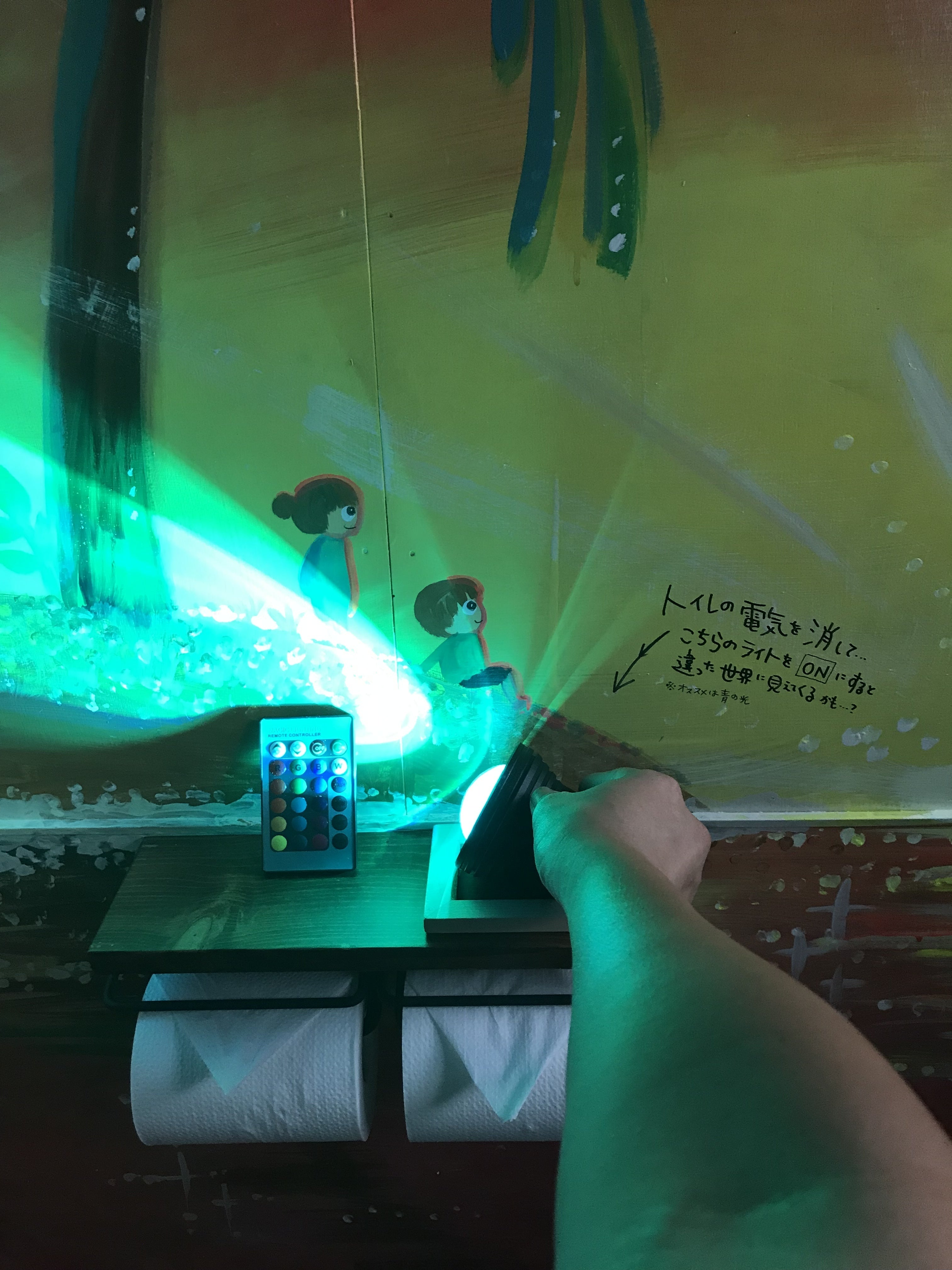 トイレの灯りを消して、不思議なライトを照らすと…