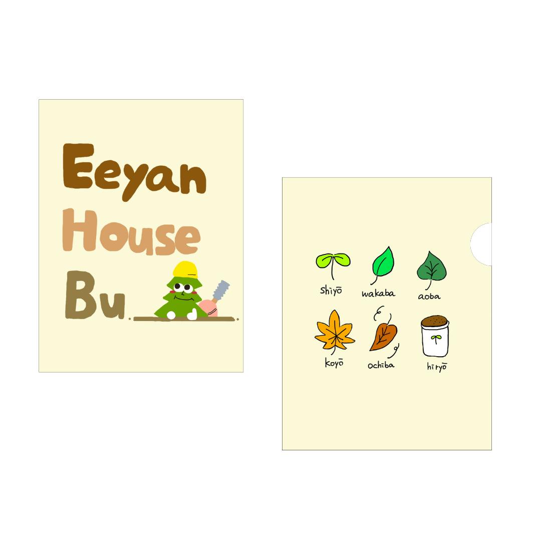 表側は、ええやんハウス部を見上げるように「ええやんポーズ」をするオリジナルキャラクターが可愛い!裏側には、ええやんハウス部メンバーの呼び名である”葉っぱ”のイラストがズラリと並べられています!