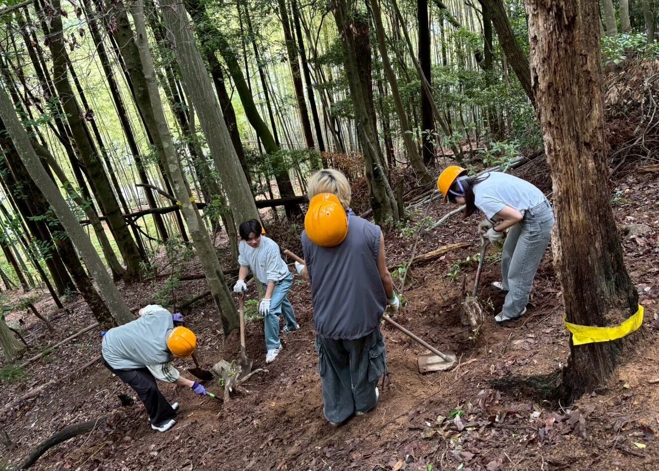 ところが、基礎を設置する場所には大きな木の根がびっしり張っていたため、根を掘り起こしたり切断したりしながら、地面の整備を進めました。