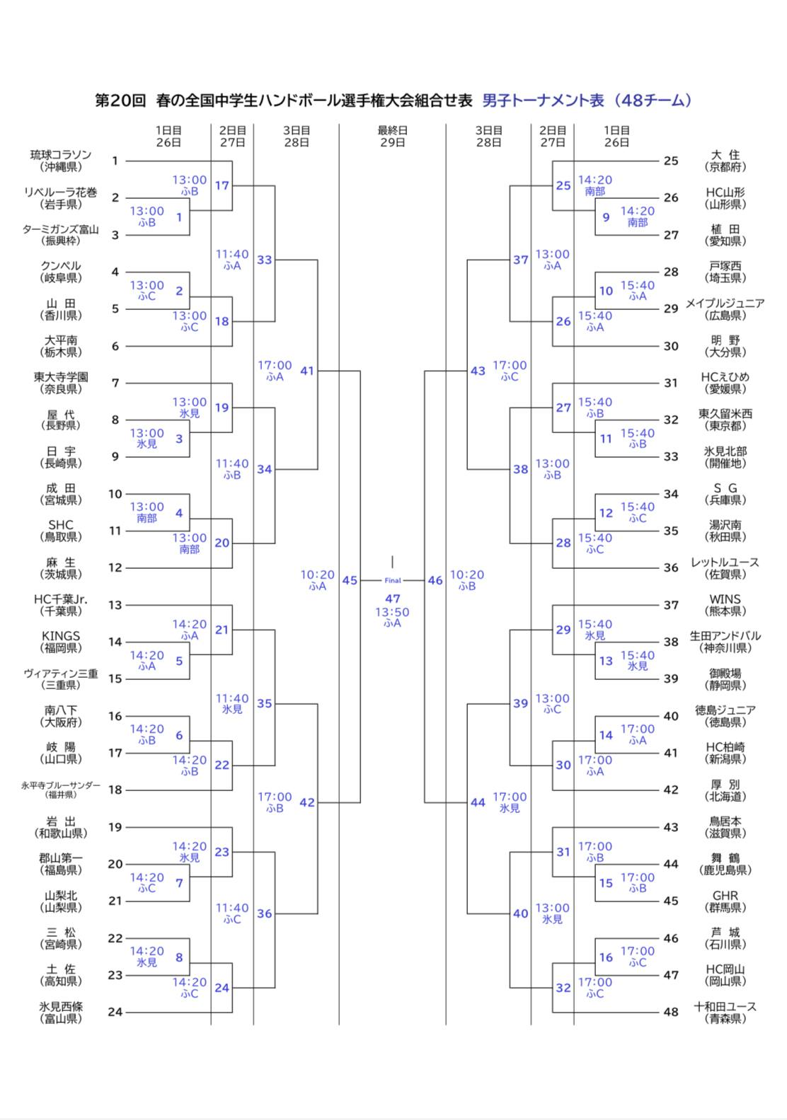 昨日、春中出場チームの大会組み合わせの抽選会が行われました。