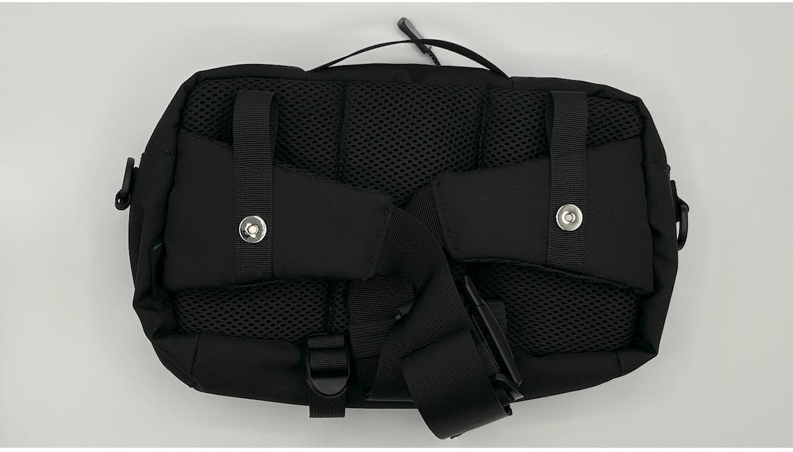 腰部にある装着バックルは、ドイツ・フィデロック社のマグネットバックルを採用。近づけるだけで自動的に吸着し、上下にずらすだけで簡単に外せる仕組みです。最初は操作に戸惑うかもしれませんが、慣れるとスムーズに着脱できるようになります。カチャッとくっつく瞬間は、思わず感動してしまう心地よさです。