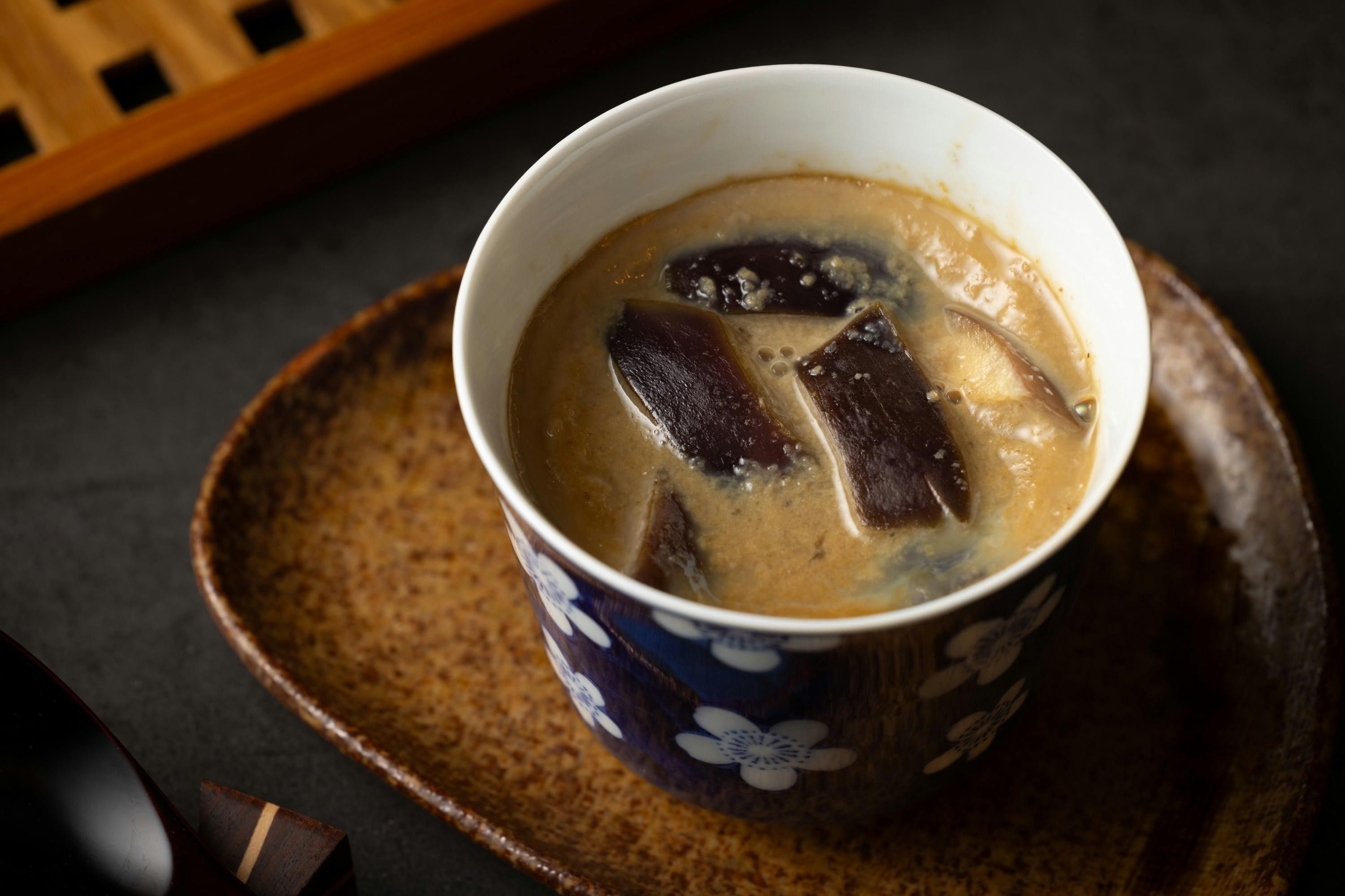 「吉川ナス🄬」は賀茂なすの先祖とも言われ、平安時代から千年以上も大切に守り継がれ、もしかすると紫式部も食したかもしれないロマンが詰まったナスです。そんな「吉川ナス🄬」と、何か特別な日に食べたくなり、気づいたら手に取ってしまう存在である「茶碗蒸し」のコラボ。ナスをふんだんに使用した贅沢な新触感の逸品を開発中です。