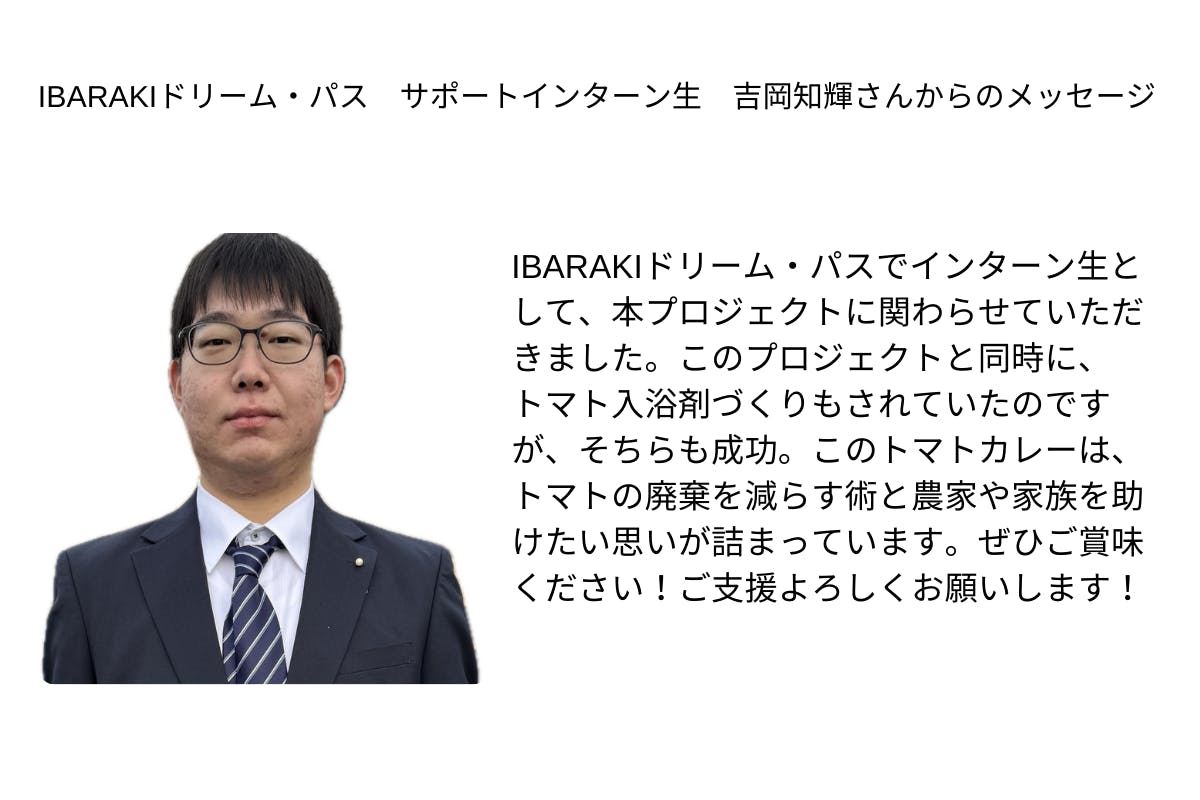 茨城県のトマト嫌いの高校生が作った、祖父母のトマトで一番おいしいカレーを届けたいのプロジェクトをご覧いただきありがとうございます。