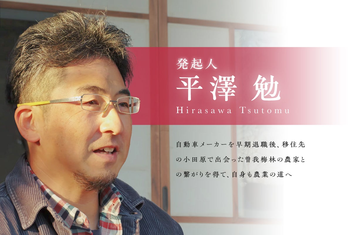 はじめまして。私は曽我梅林で梅農家を営む平澤勉と申します。もともとは自動車メーカーのエンジニアとしてキャリアを積んでいましたが、ある日、高速道路でバイク事故に遭い、生死をさまよう経験をしました。奇跡的に命を取り留め、その出来事をきっかけに「人はいつ死ぬかわからない」という現実を痛感し、人生がいつ終わるとしても「あぁ、良かった」と思えるように過ごしていこう、と思うようになりました。