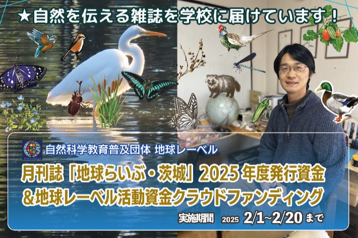 このプロジェクトは、当団体の2回目のクラウドファンディングになります。身近な季節の自然から世界の記事まで、幅広く地球ってどんなところなのだろう!という興味をテーマに発行している月刊誌「地球らいぶ・茨城」。現在、つくば市、土浦市の公立の小中学校の他、茨城県立図書館、つくば市立図書館、筑西市中央図書館、土浦市立図書館など100ヶ所ほどに毎月無償にて配架させていただいています。この雑誌は、現在発行資金を一般の定期購読により調達しています。100件ほど定期購読をお申し込みいただきますと、小中学校・公共施設・図書館など100箇所に継続的に送ることができます。この目標を達成するため今回クラウドファンディングを立ち上げさせて頂きました。この度は2025年度の発行資金・地球レーベル活動資金クラウドファウンディングにご協力よろしくお願いします!