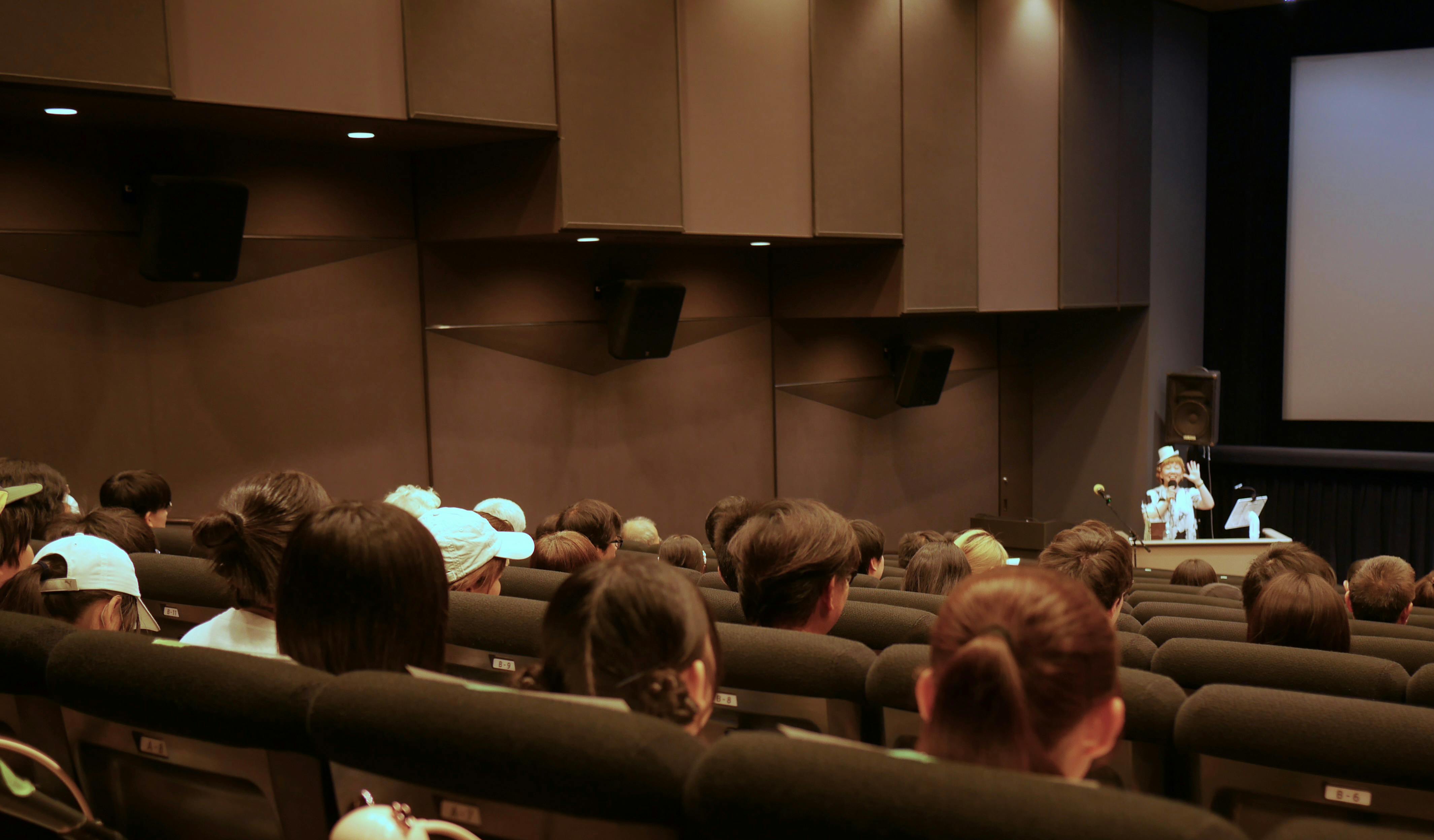 昨年の活弁上映では、受付から当日の司会まで子どもたちが担当してくれ、いざ上映が始まると、100年前の映画を観ながら、みんなで歌って拍手で応援、大笑い!なんと楽しかったことでしょうか。大人の私にとっても宝物のような思い出です。あぁみんなで何かを体験するってなんて豊かで素敵な事でしょう!映画には多くの要素が詰まっていて、それはまるで様々な世界への扉です。その扉を開けるワクワクを、どの子にも体験をしてほしいと心から願います。