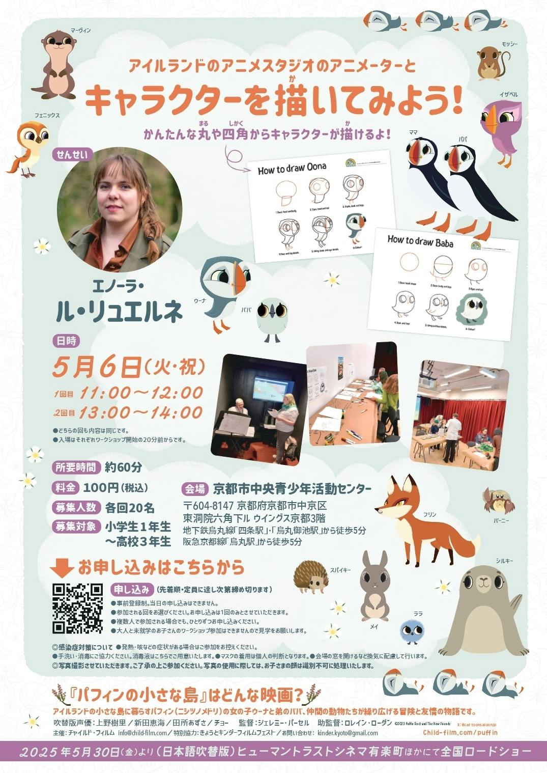 アイルランドのアニメーションスタジオ「カートゥーン・サルーン」の最新作『パフィンの小さな島』の日本公開を記念して、同スタジオのアニメーターによる子ども向けアニメーション・ワークショップを京都で開催することが決定しました。本ワークショップは、子どもむけ映画の配給を行うチャイルド・フィルムさんとの協力で実現しました。