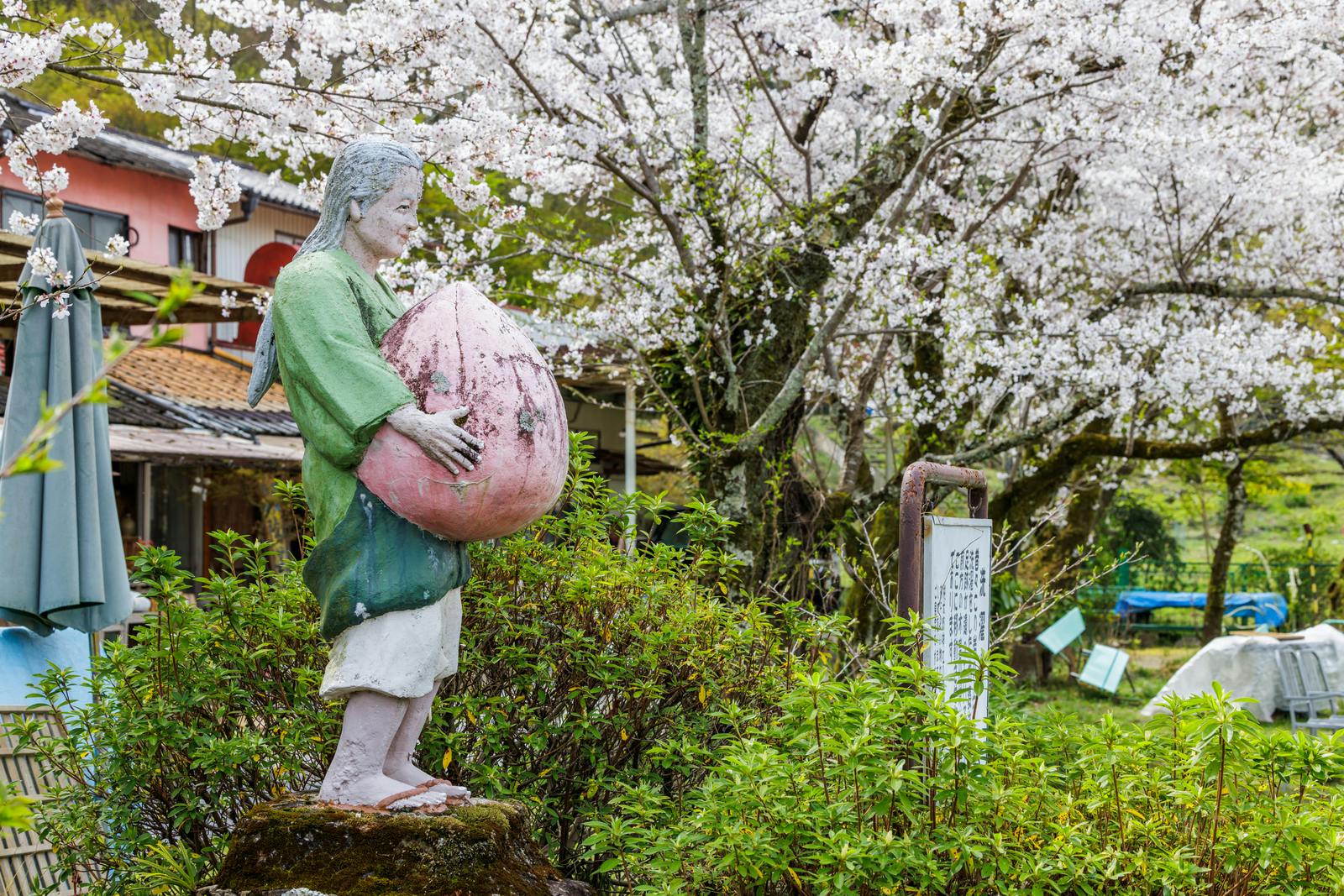 境内にはおとぎ話に登場するキャラクターのコンクリート彫刻が点在し、桃太郎伝説を実感できる場所となっています。キャラクターたちのシュールな雰囲気がローカルな魅力の一つでもあり、ぜひ訪れていただきたいスポットです。