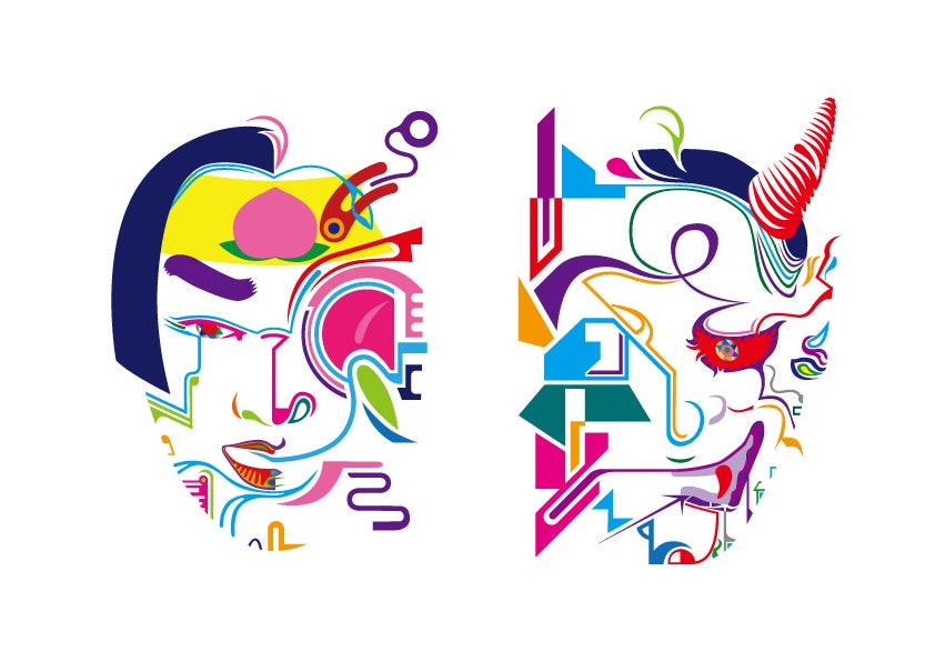 桃太郎と鬼をモチーフにしたラベルデザイン