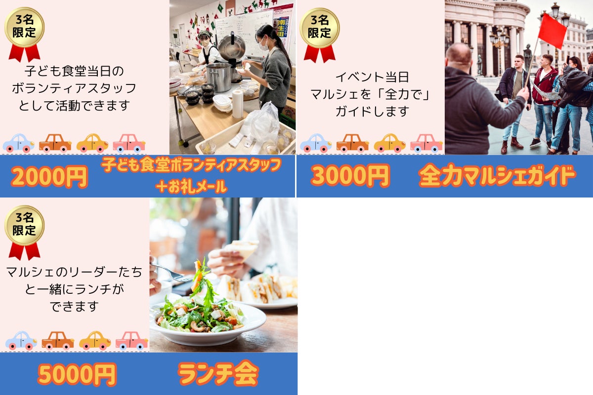今回のご支援を通じてみなさんとつながり、マルシェ後も一緒に地域のために活動ができる、そんな日々を目標にクラウドファンディングを全力で頑張っていきたいと思います!