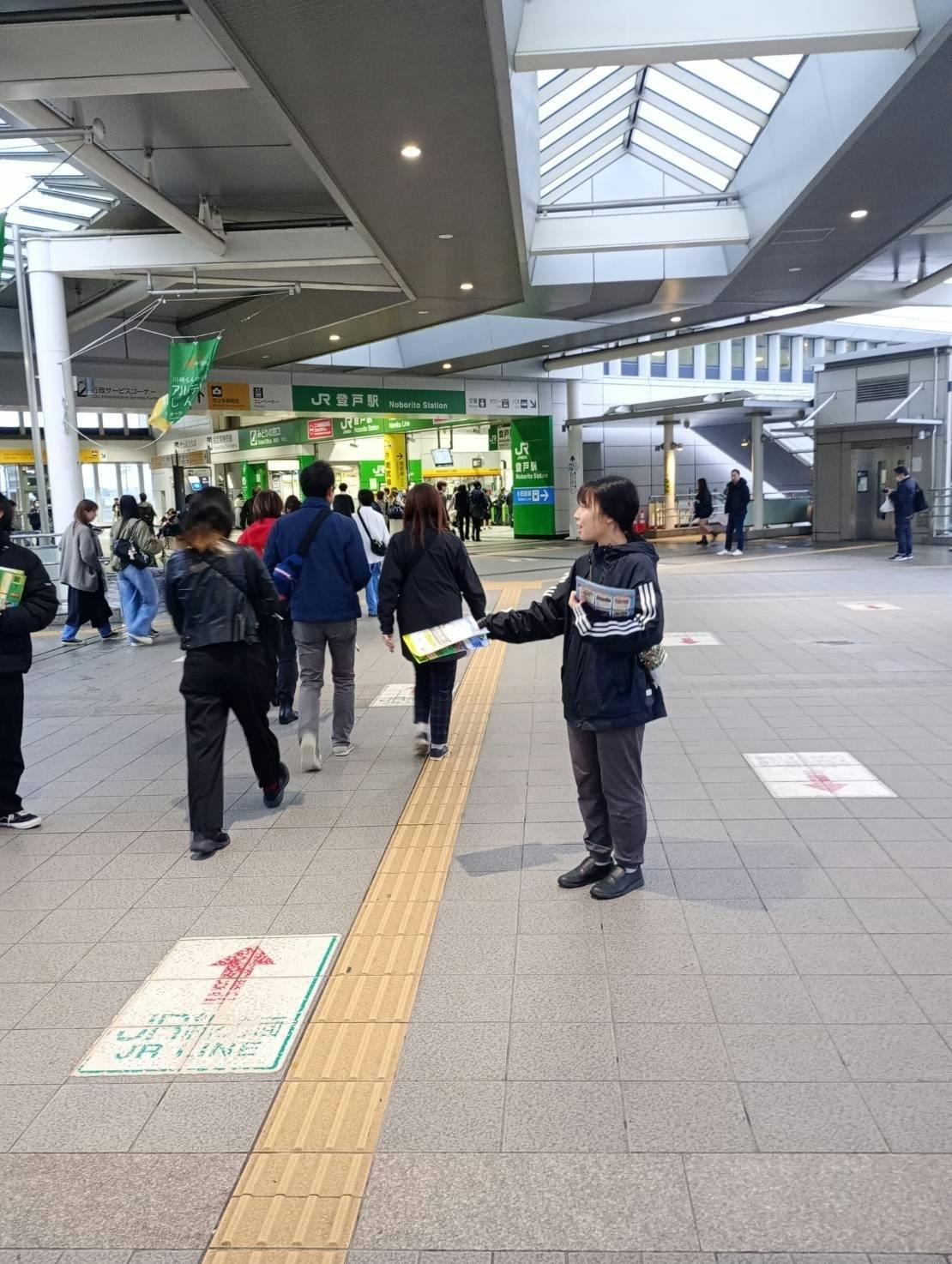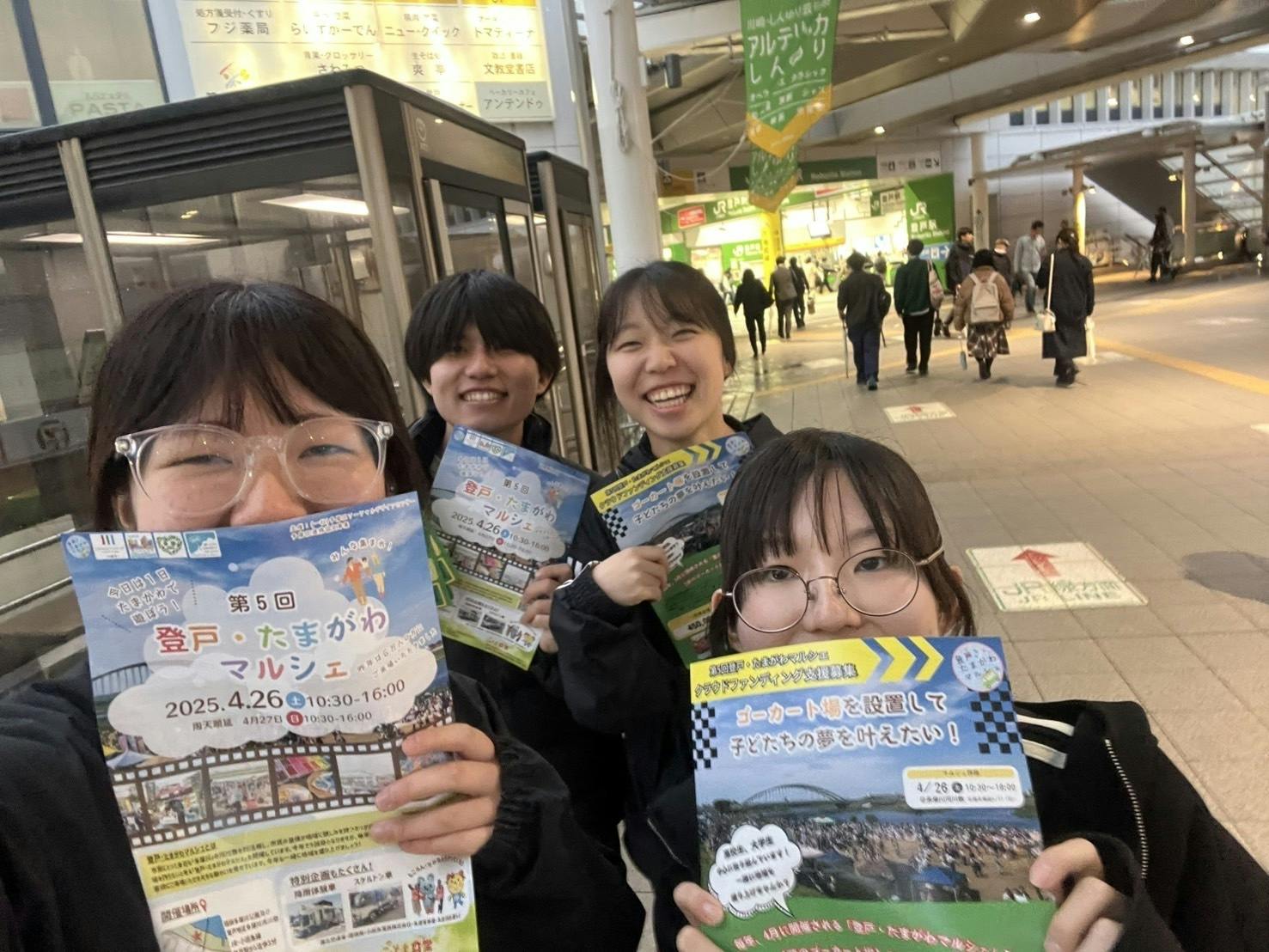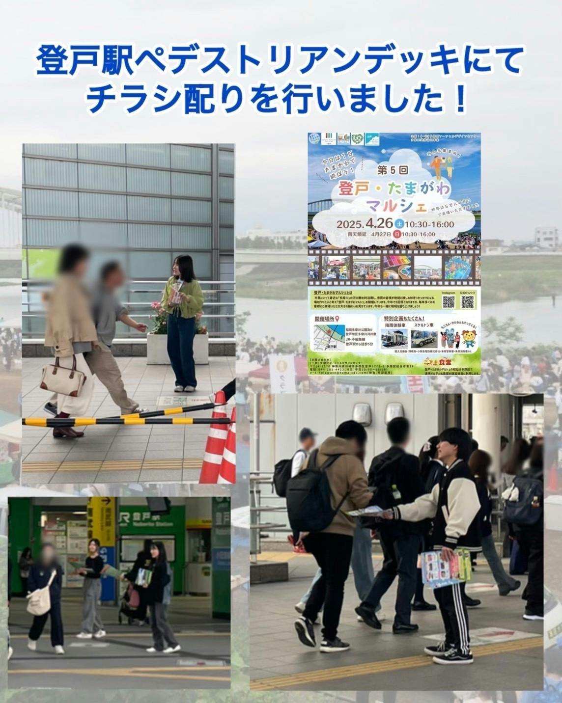 4/12、13に登戸駅ペデストリアンデッキにて第五回登戸・たまがわマルシェのチラシを配布しました!