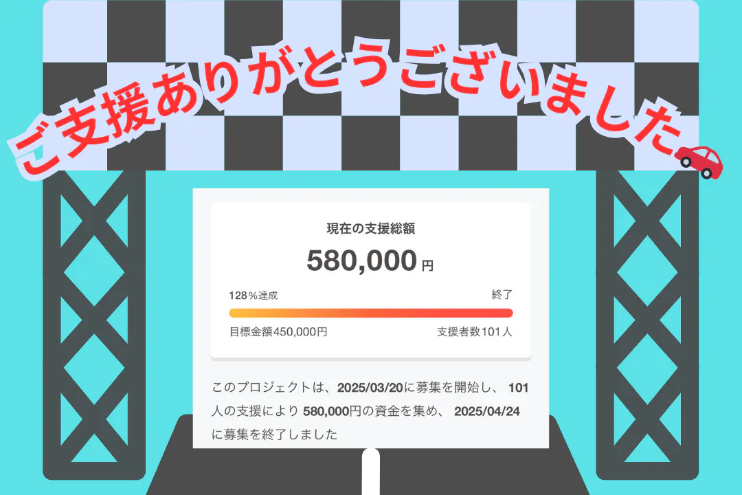 目標額(45万円)を大幅に超えて、58万円のご支援をいただきました!支援者はなんと101名!