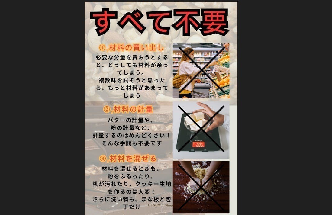 この度インターネットで今まで培った経験を活かし、クッキー生地の販売をしようと思いました