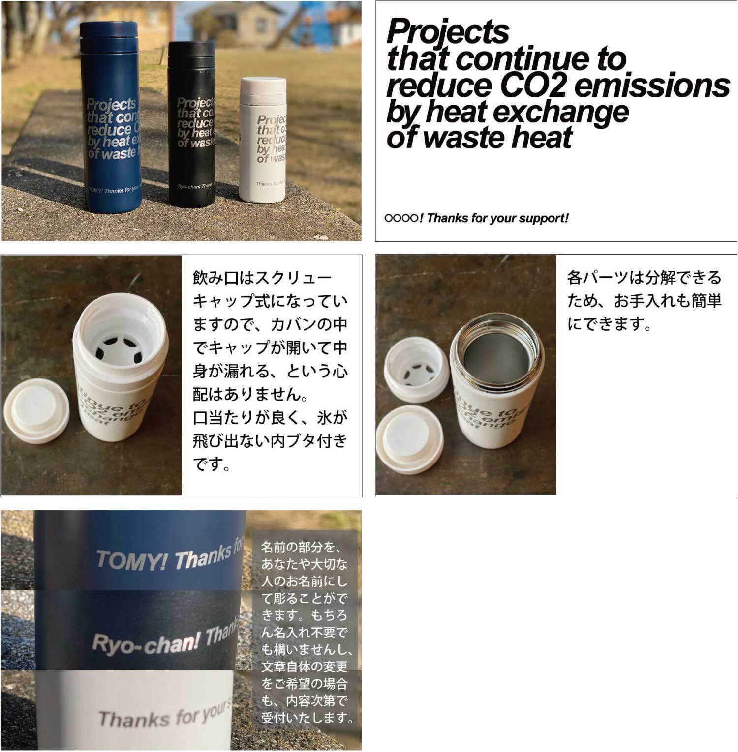 お礼のメッセージ + 活動報告メール + サーモステンレスボトル