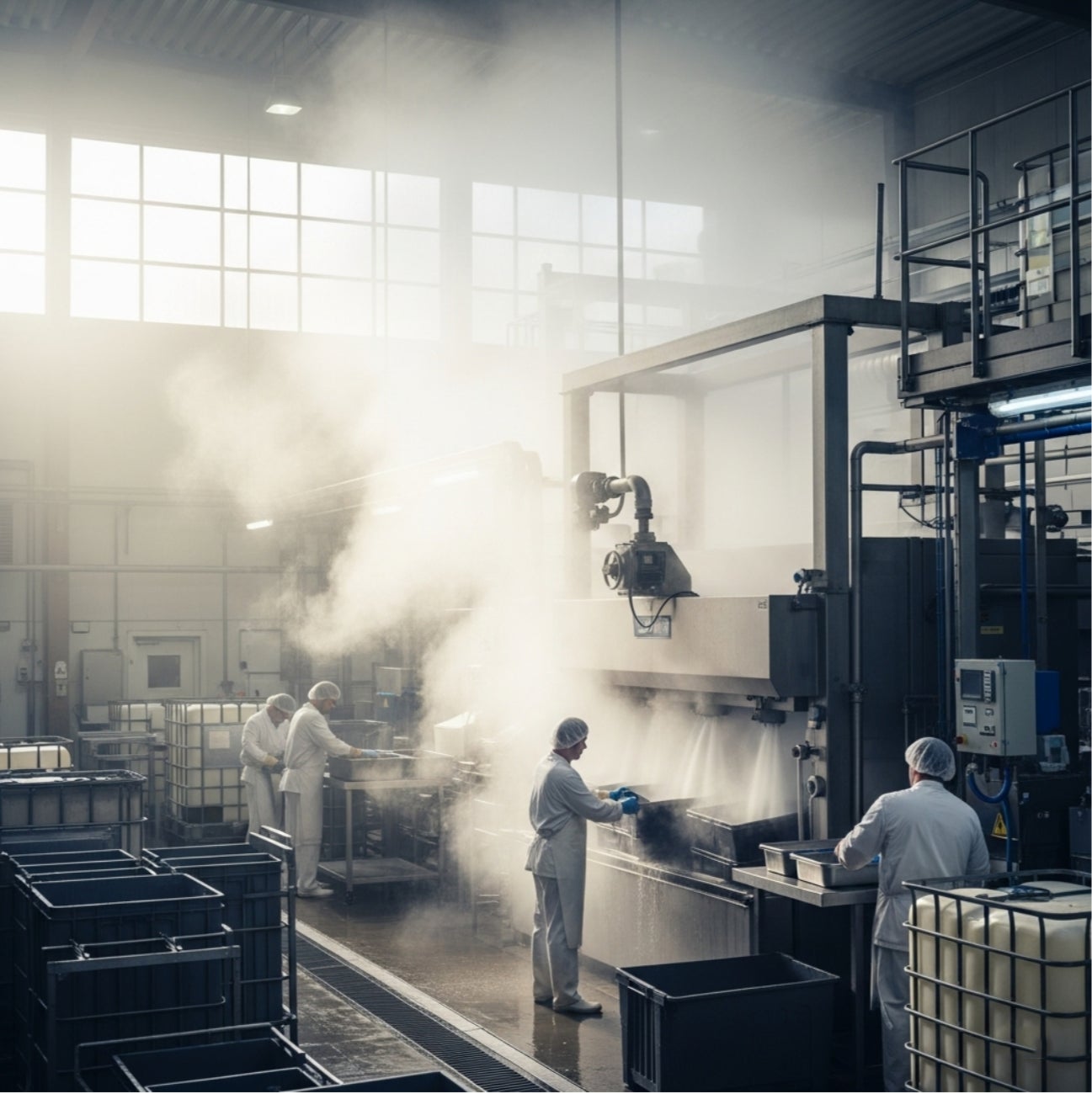 少し専門的な話になりますが、食品工場では、食品の湯通しなどの調理過程や、またバッカンと呼ばれる、料理や食材を収納・運搬する業務用のクレートの洗浄などで大量の高温水を必要とします。食品工場に限らず高温水を使用する工場は多いと思いますが、これらの高温水は、温水として利用された後はそのまま排出される事になります。これは、化石燃料を燃やして作ったエネルギーを、ただ捨てているのと同じことです。