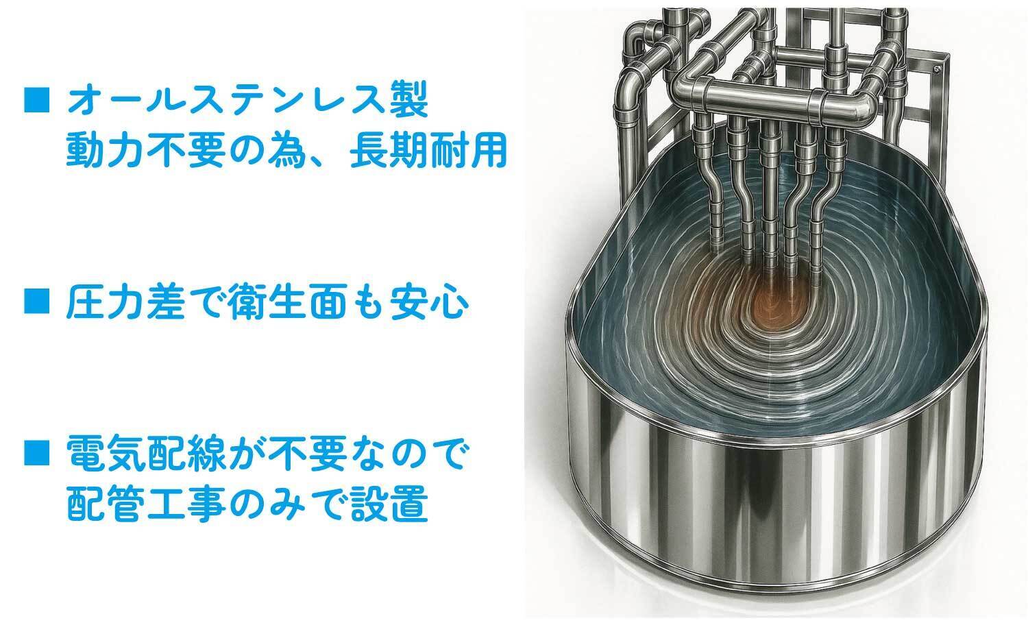 ■オールステンレス製で動力不要の為、長期耐用