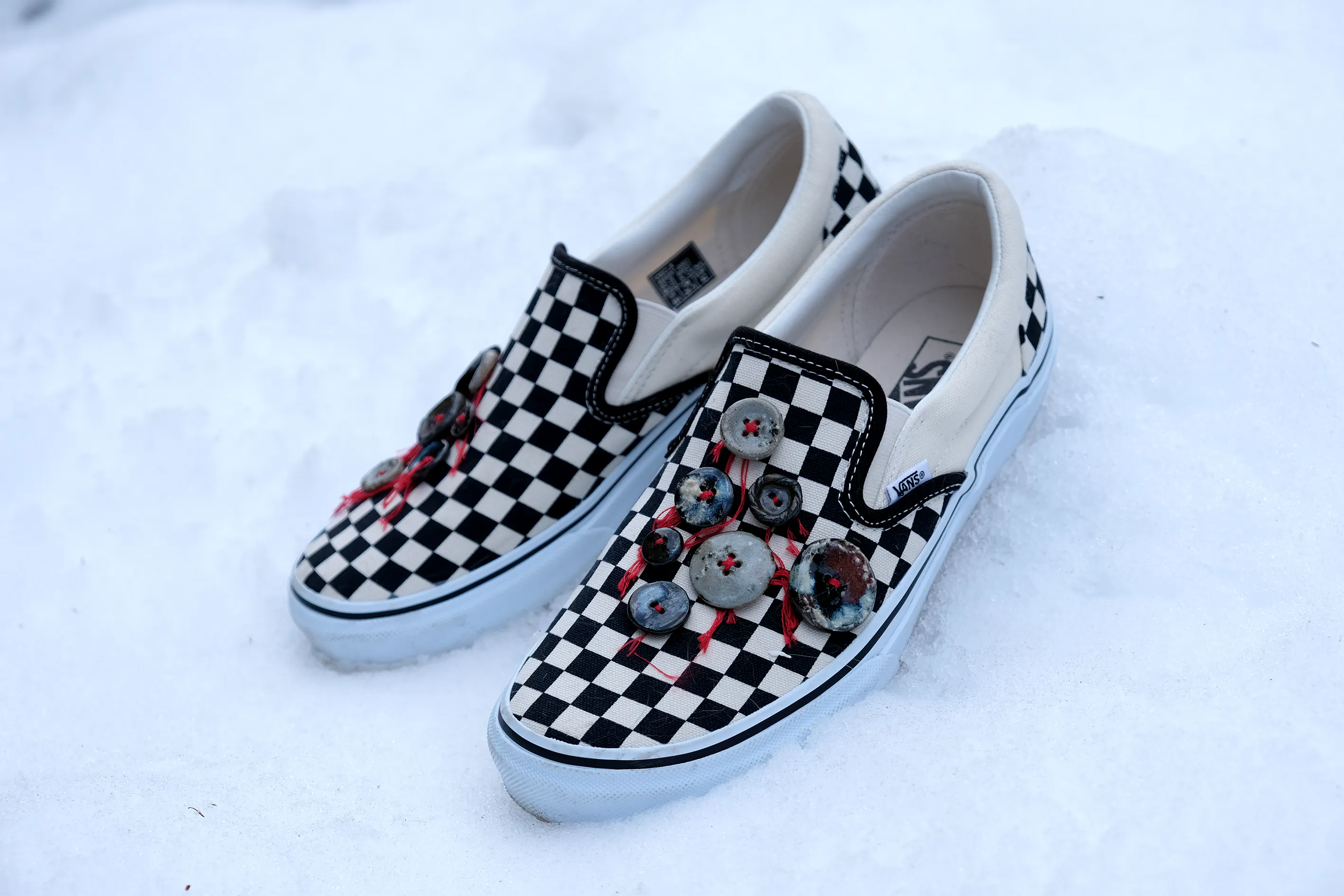 さてさて、今日はリターン品のボタンセットを使ったリメイクスニーカーが完成したのでご紹介します◎