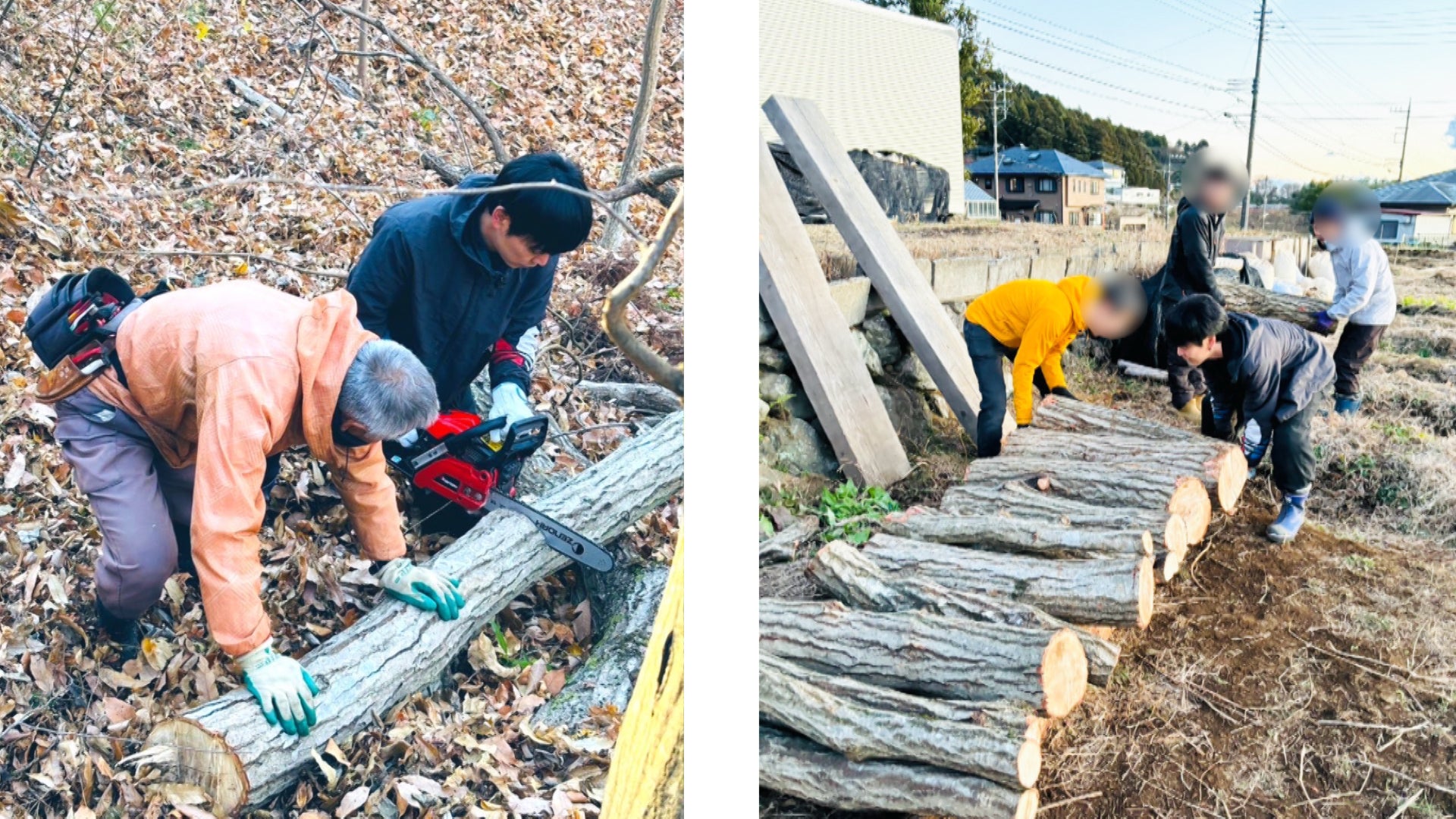 ⑤キノコ栽培:森林管理をされている地元の先輩たちの力をお借りして、里山~キノコ栽培所にてキノコの大量収穫を実現します。