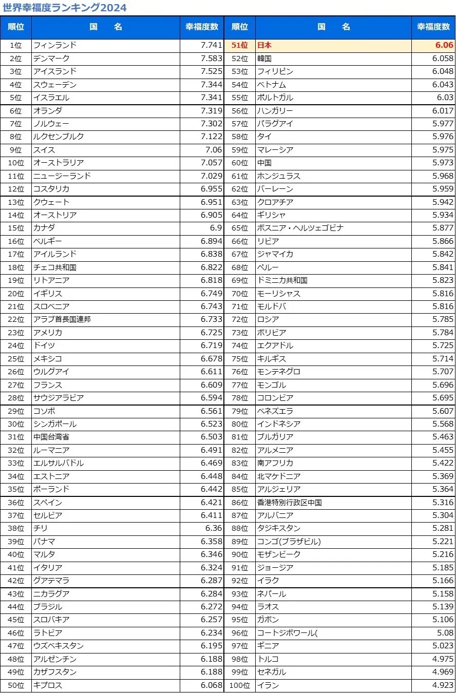 日本人の幸福度は143か国中51位。主要7か国(G7)の中では、なんと最下位です。