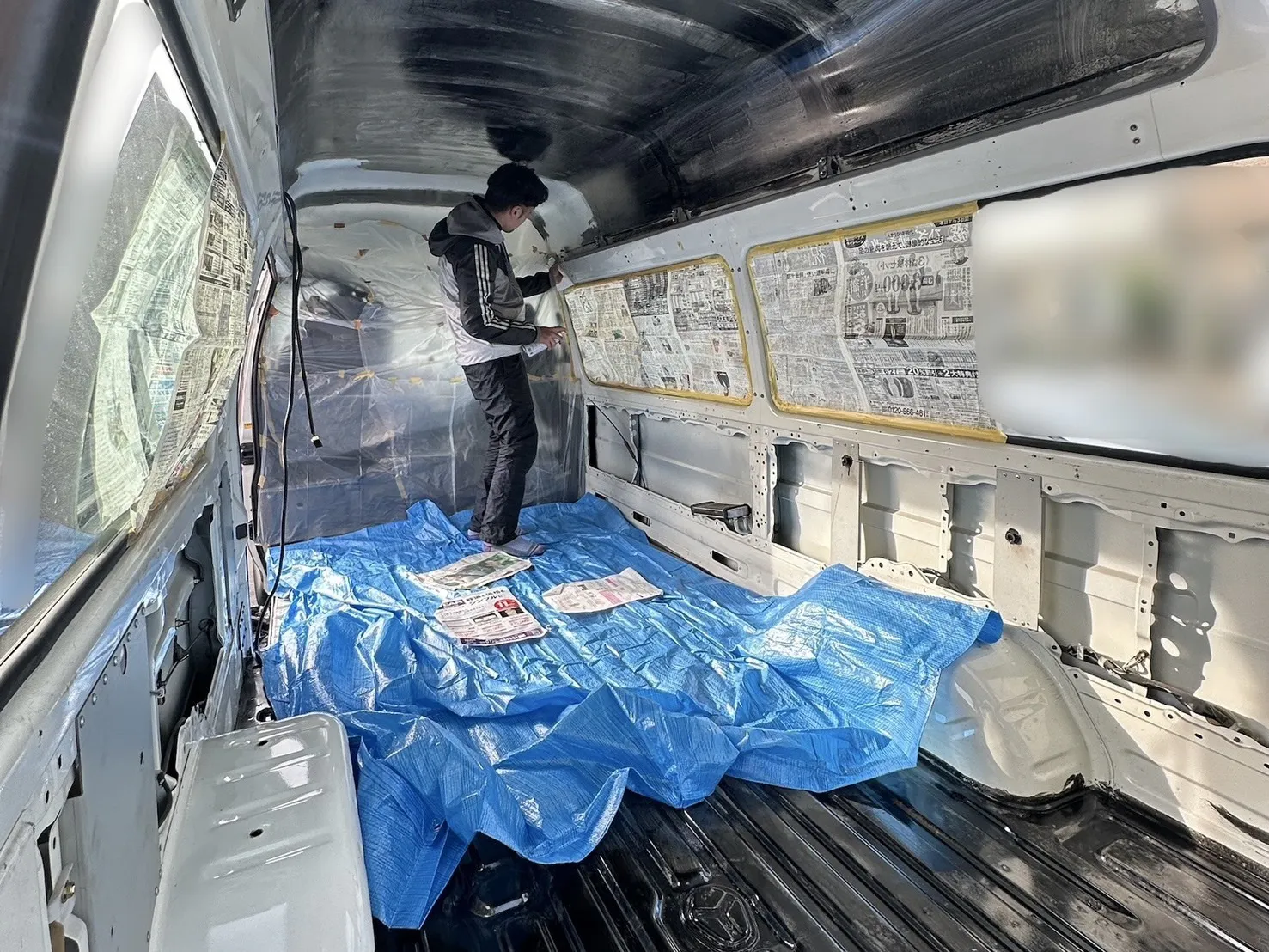 まずは施工のための準備として、車室内の床材や内装材を全て撤去!