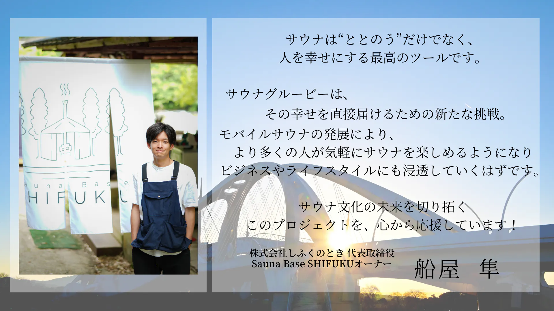 株式会社しふくのとき 代表取締役 Sauna Base SHIFUKUオーナー 船屋さん