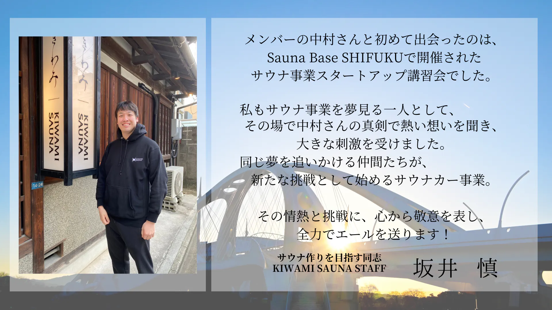 サウナ作りを目指す同志 KIWAMI SAUNA STAFF 坂井さん