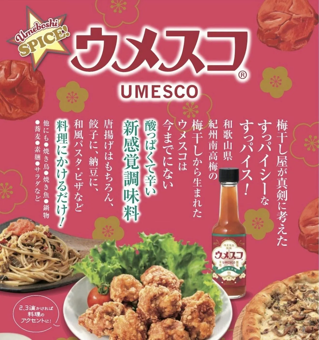 ウメスコは、どんな料理にもひと振りでアクセントを加え、新しい食の楽しみを発見できます。