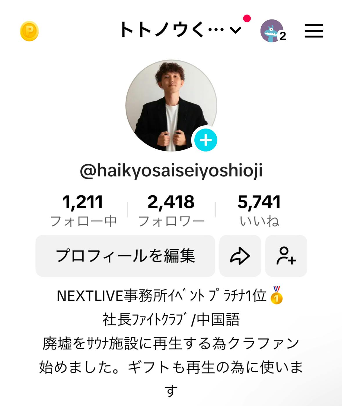 普段は会社経営をしつつ、tiktokでライブ配信活動を行っております。(アカウント名:トトノウくんtiktokアカウントはこちら)