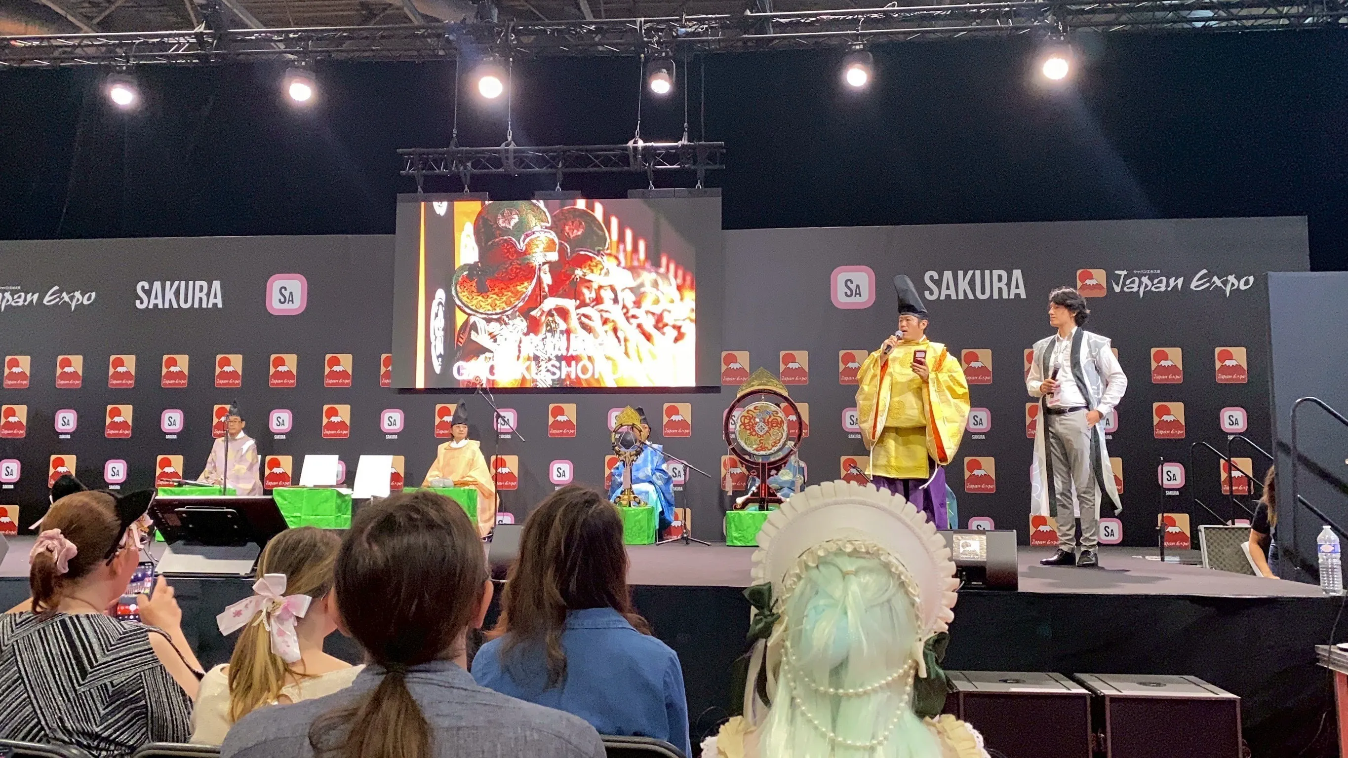 JAPAN EXPOだけあって、舞台スタッフは日本人と現地のフランス人の方が担当。柔軟にご対応いただきました。ただ、広い会場でマイクを使用する為、雅楽の楽器の音量のバランスや配置を伝えるのが難しく、思い切った演奏が出来なかった日でもありました。