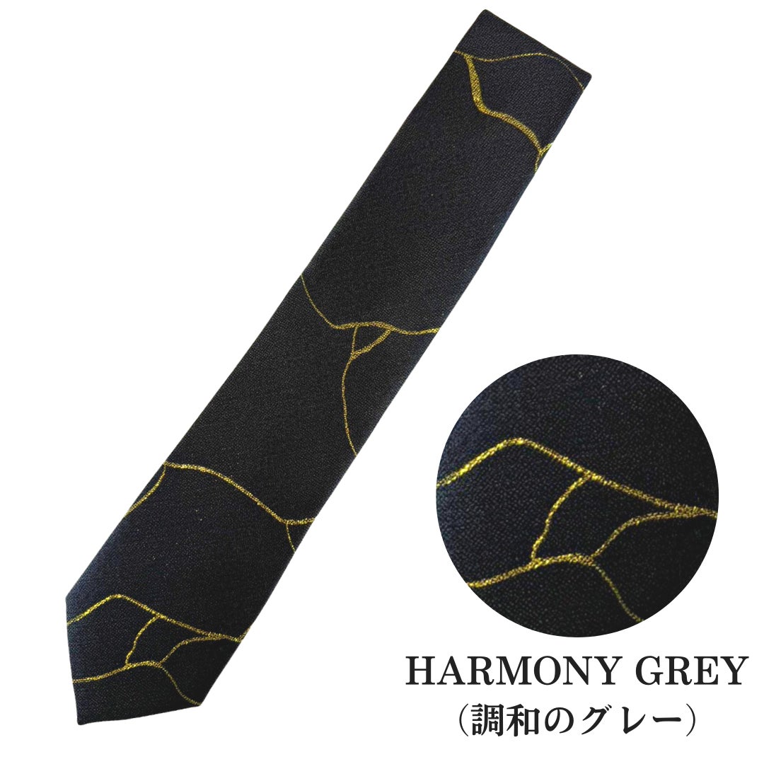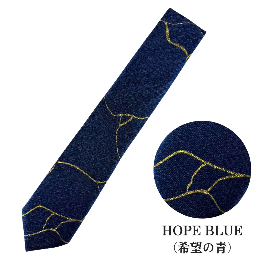 日本の伝統技術である西陣織と、「傷を美しく変える」文化である金継ぎから生まれたネクタイ、HEROのネクタイです。このネクタイは、欠けた器を金で継ぎ、新たな美を生み出す金継ぎの哲学にインスパイアされています。それはまさに、破壊と絶望を超え、共に未来を築く私たちの活動そのものを象徴しています。