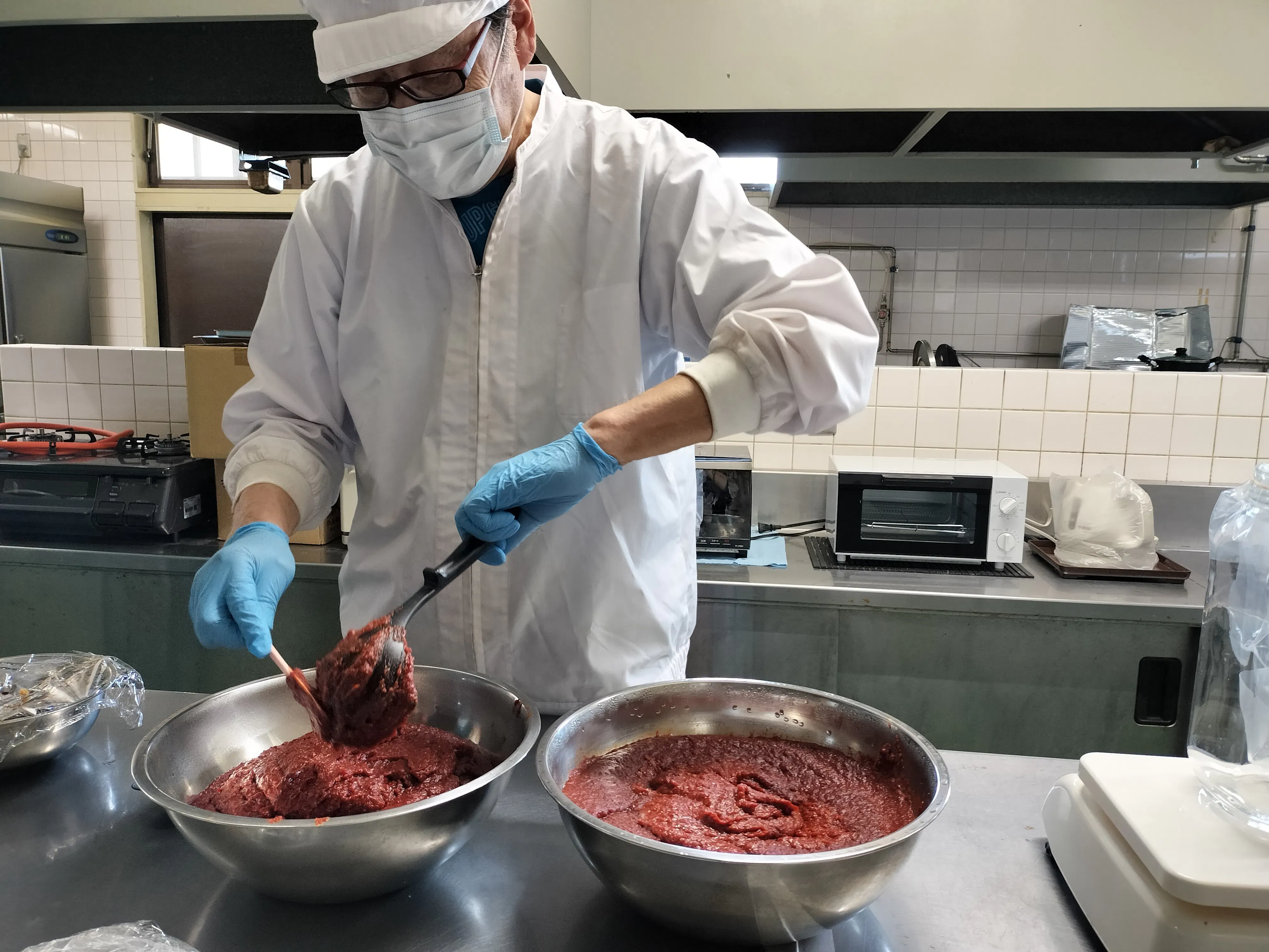 《菊芋を使った加工品の製造作業》