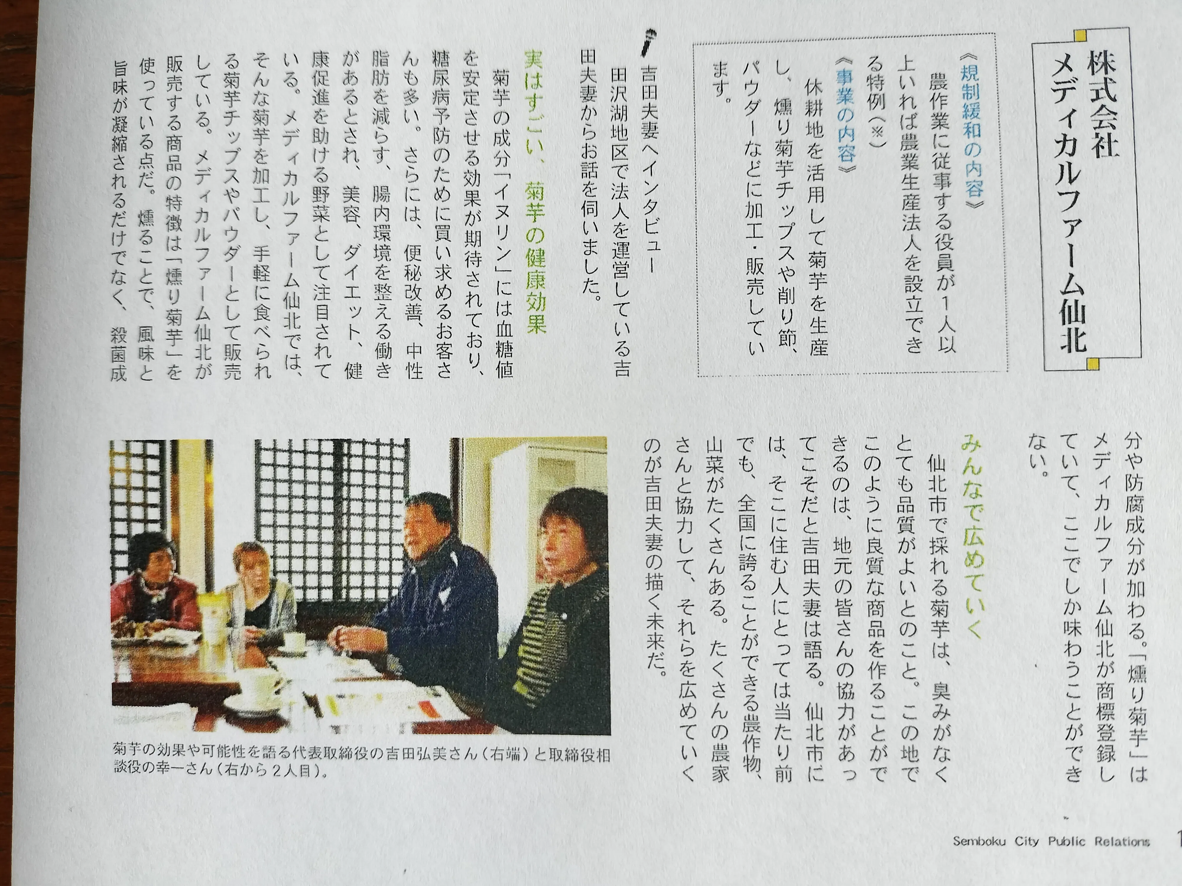 仙北市田沢湖の農業生産法人「メディカルファーム仙北」の吉田弘美(上の写真右端)です。