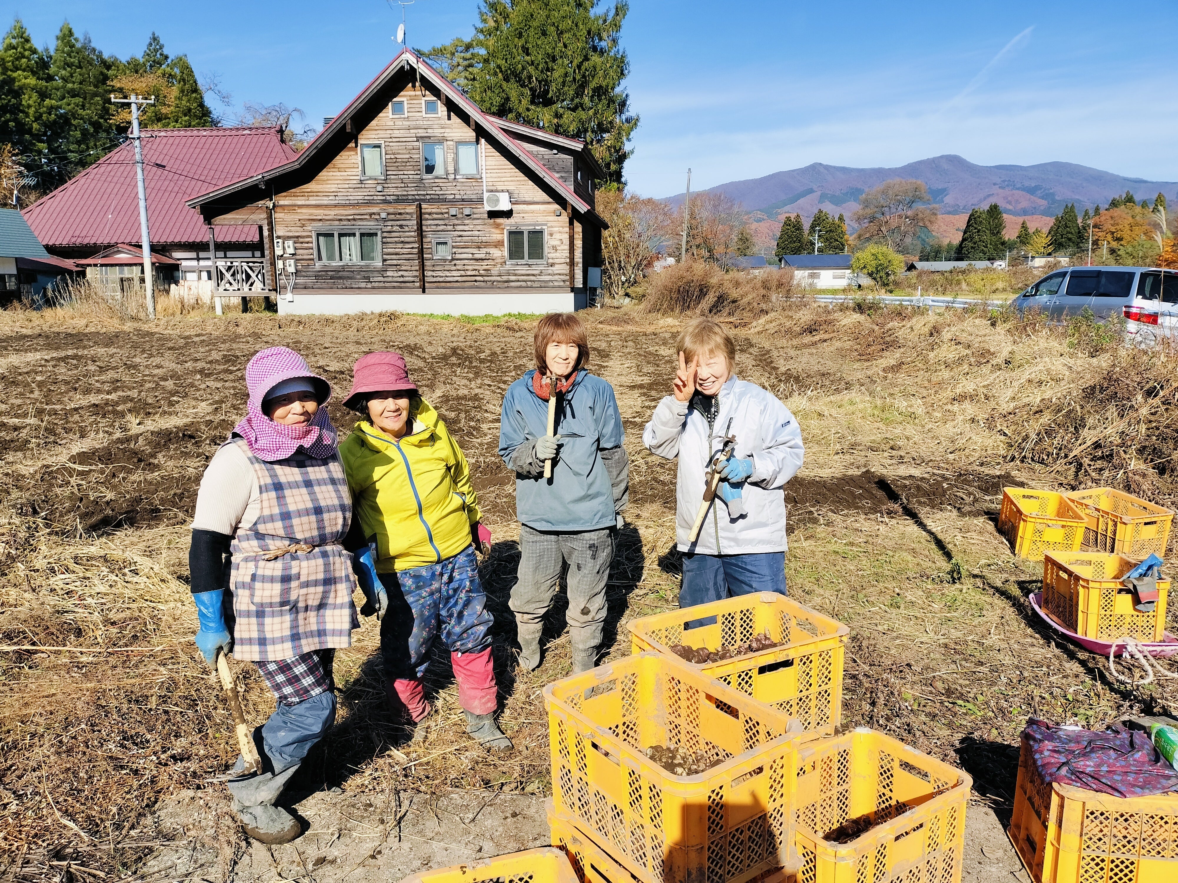 立ち上げ時から3年間は畑7反歩(約2100坪)を9人で作業をしていましたが、掘り手が年々減り続け5人になってしまった為、