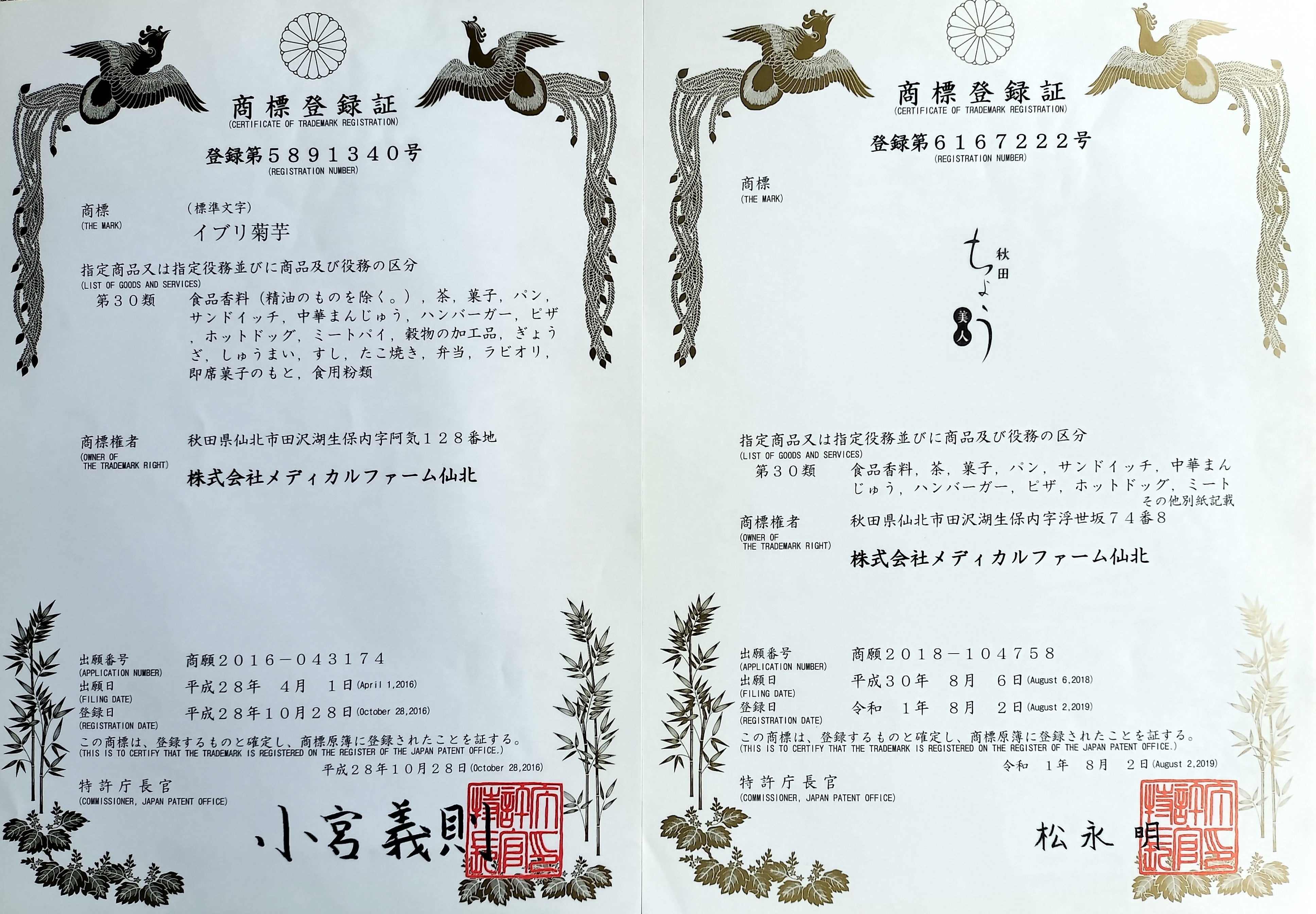 ≪「いぶり菊芋」「秋田ちょう美人ロゴ」の商標登録≫