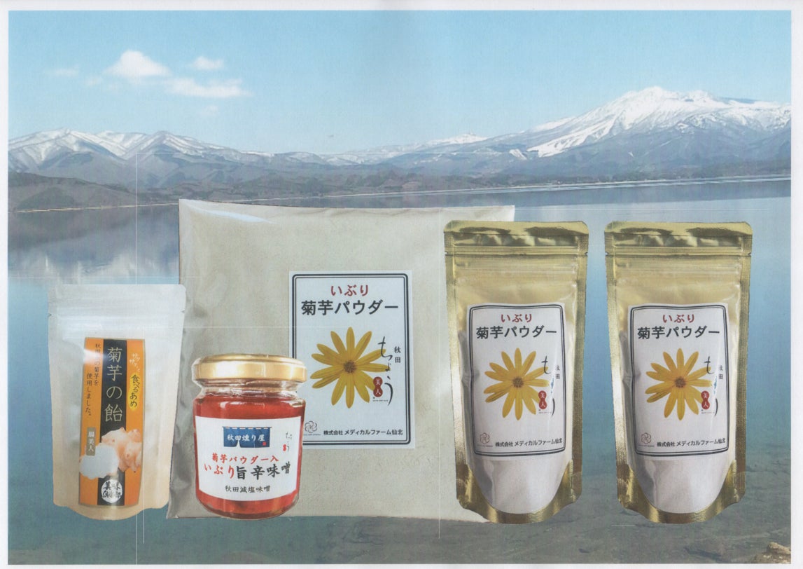 弊社商品「イブリ菊芋(商標登録済み:前出)パウダー」は、自社ブランド「秋田ちょう美人(商標登録済み:前出)」のオリジナル製品です。いぶりは「いぶりがっこ」に代表されるように、保存技術として古くから秋田の食文化に根付いています。