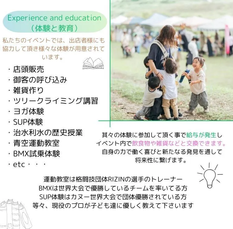 企業様からのご支援につきましては、企業名の掲載を会場内に設置させて頂きます。それと併せまして、イベント等職業体験などに参加して頂いた子ども達から感謝の手紙を送らさせて頂きます。