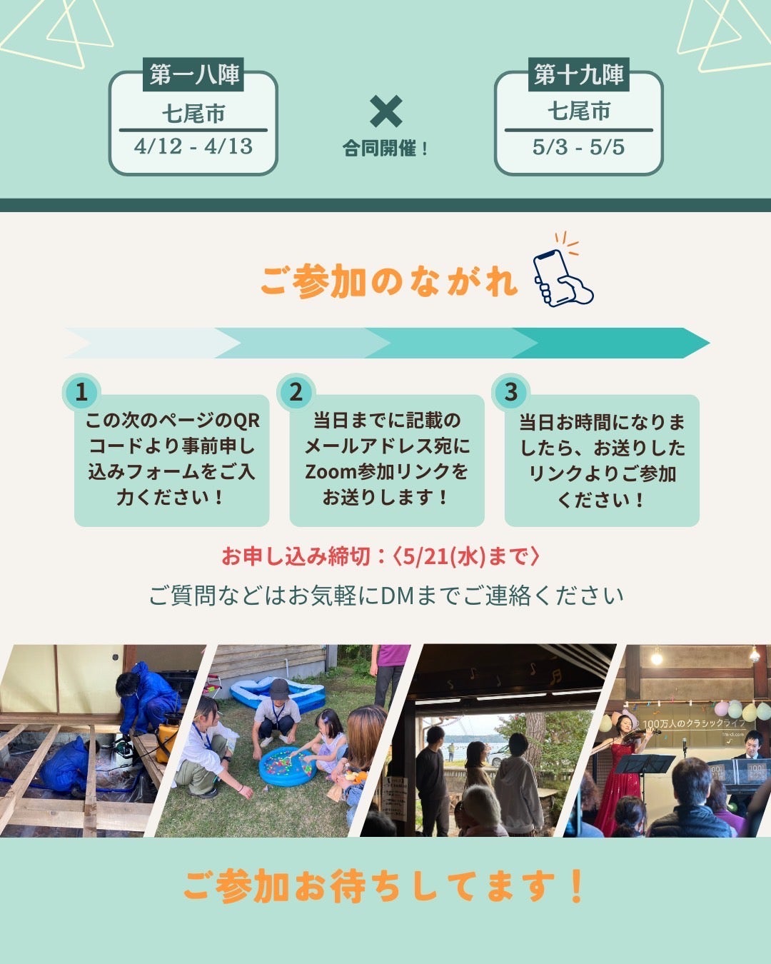 当日は、4&5月にCFFインターローカルの能登ボランティアに参加したメンバーからの活動報告とともに、みんなで能登のことを知ったり、みんなで私たちにできることは何かを考えていきます。