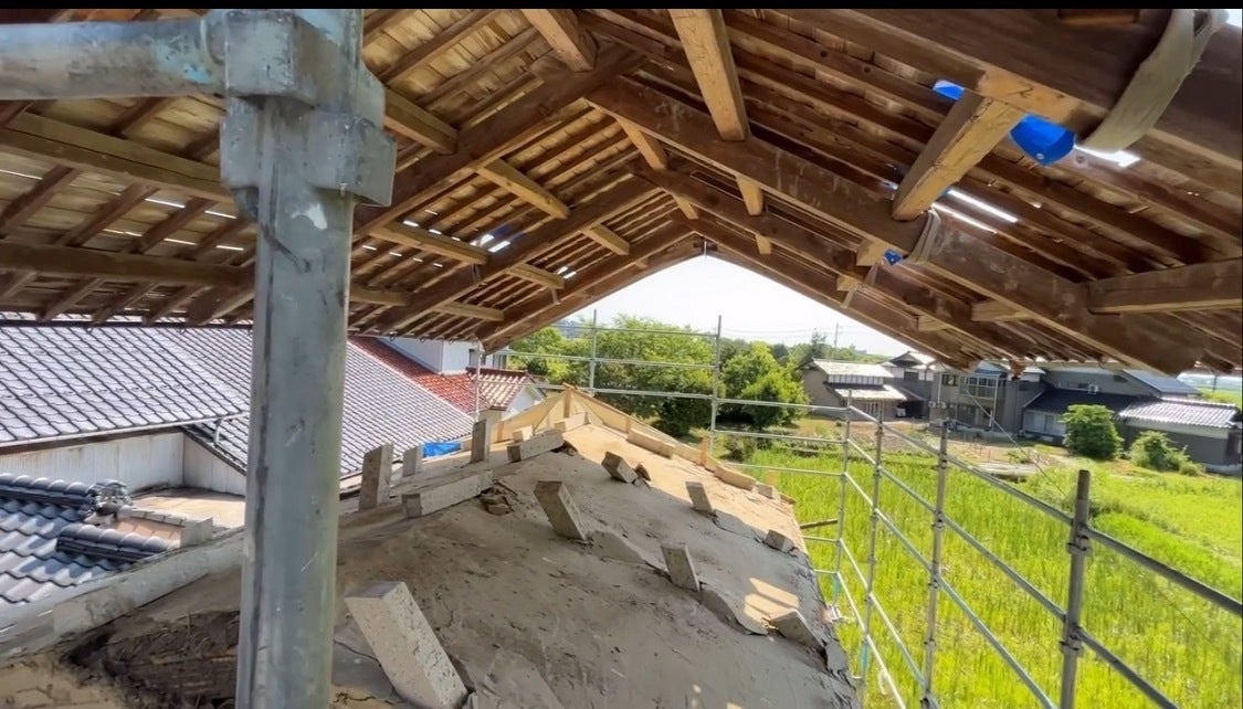 では、実際①の主屋根を直すのにはどうするか?と言うと、以下画像の4つのプロセスが必要になります。