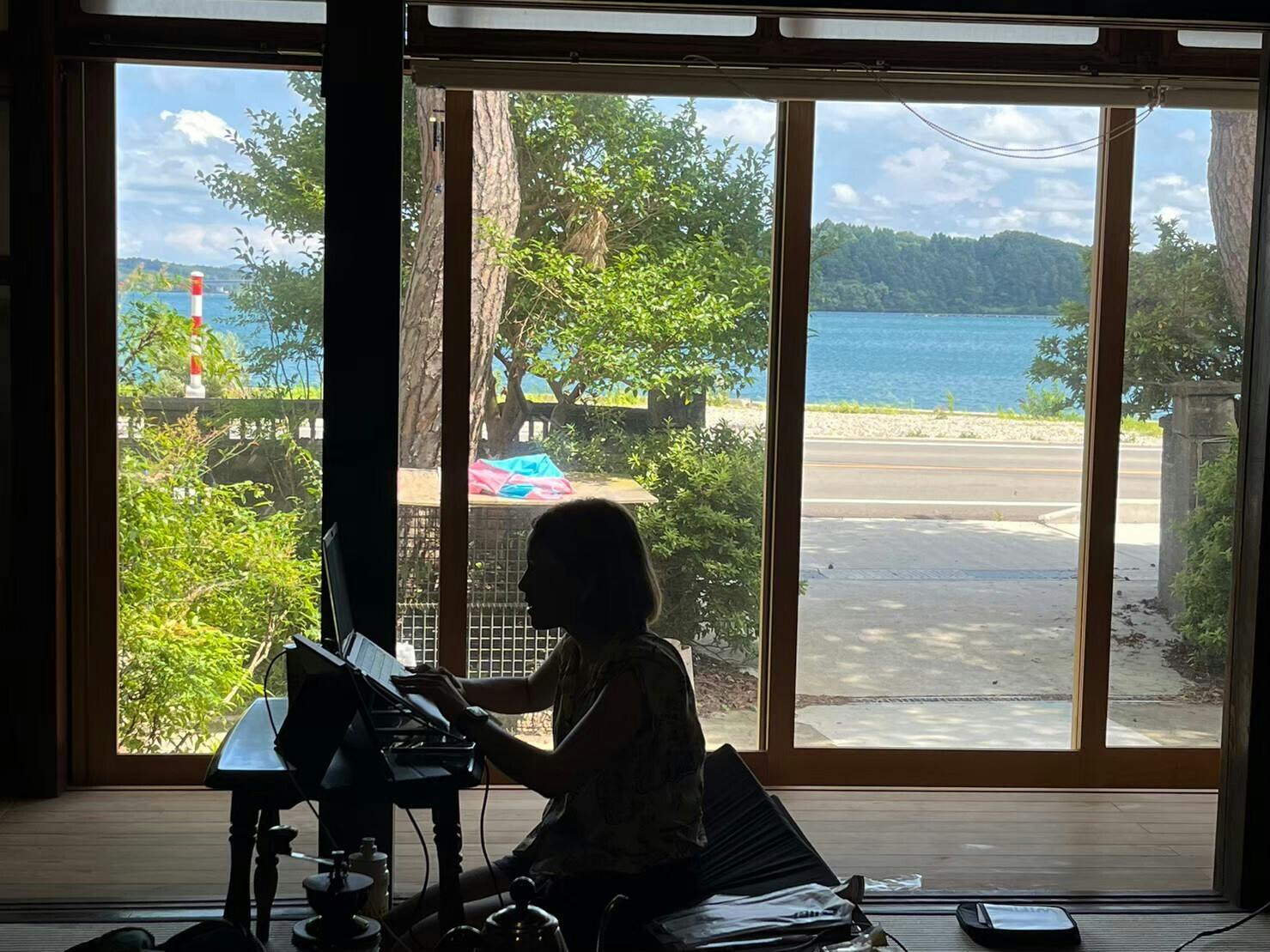 「蔵のDIYをしに行きたいけれど、どのような場所で過ごすことになるの?」そんな疑問にお答えすべく、建築士である森野が築150年の古民家を改修した、その家のようすを紹介していきます。本日は、海のみえる縁側のある和室編!トップ写真は、その和室で活動メンバーがリモートワークをしているときのもの。のどかな景色に溶け込みながら、集中もリラックスもできる空間です。窓を全開にすると、ちょっとオープンエア気分!写真は住民の方を招いたクラシックコンサートのとき。縁側を使って干し柿作り。海の向こうには能登島が見えます天井が高くて気持ちいい!昔の建築の特徴がいまも生きています2部屋の和室はつなげることも、襖で仕切ることも可能。大人数で食卓も囲めます!皆さんも、DIYで森野家にお越しの際には、縁側でぼーっと海を眺める時間や、広い和室で仲間とまったり過ごす時間を楽しみにしてくださいね!