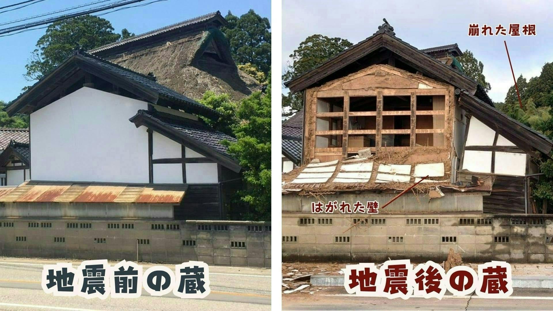 蔵は、全壊は免れましたが、かなり大きな被害を受けました。