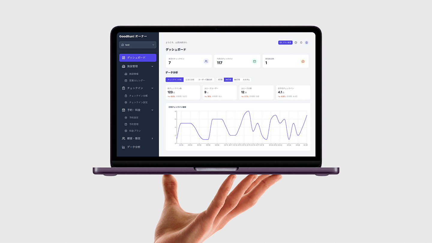 予約・決済・顧客管理。現在オーナーさんが手作業でこなしていることを、GoodRun!のダッシュボード一つで完結できるようにします。オーナーさんが受付や事務作業に追われることなく、目の前のお客さま(ワンちゃん・飼い主さん)に向き合えるようにする。それが私たちの目指す姿です。